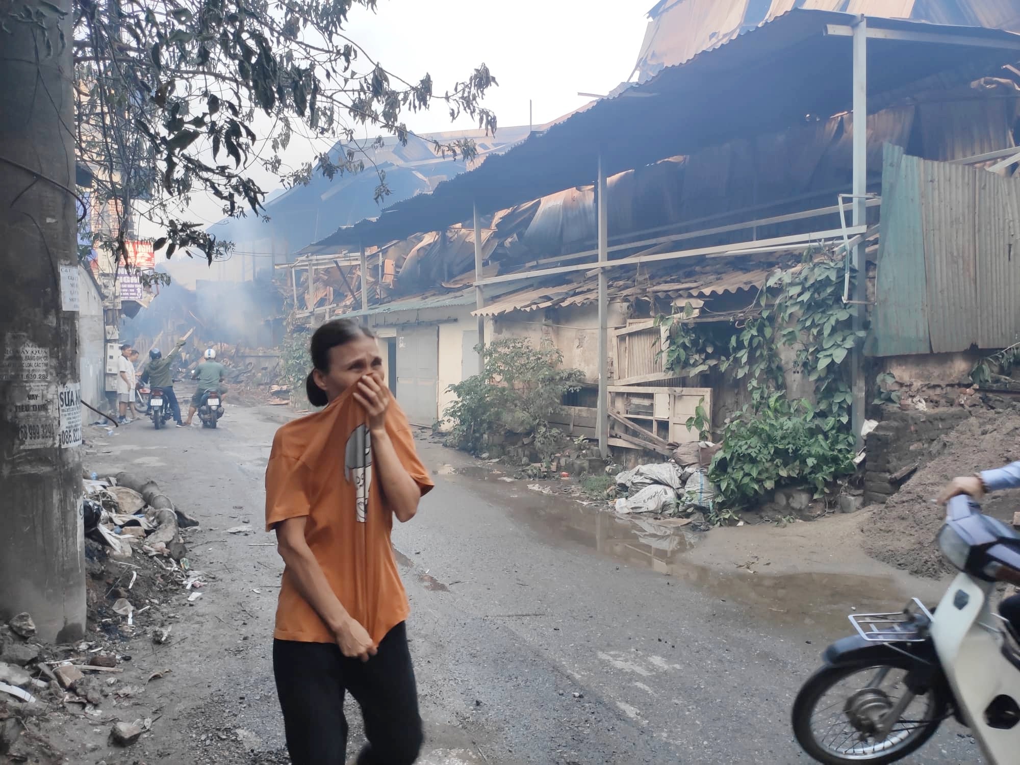 Người dân khó thở khi đi qua khu vực xảy ra cháy.