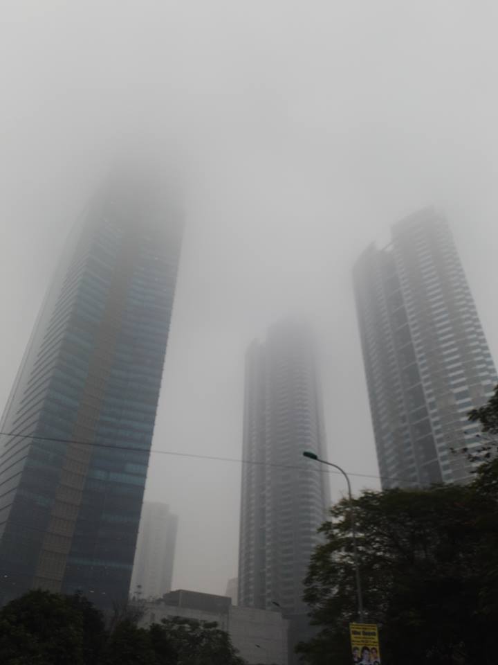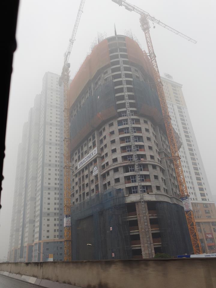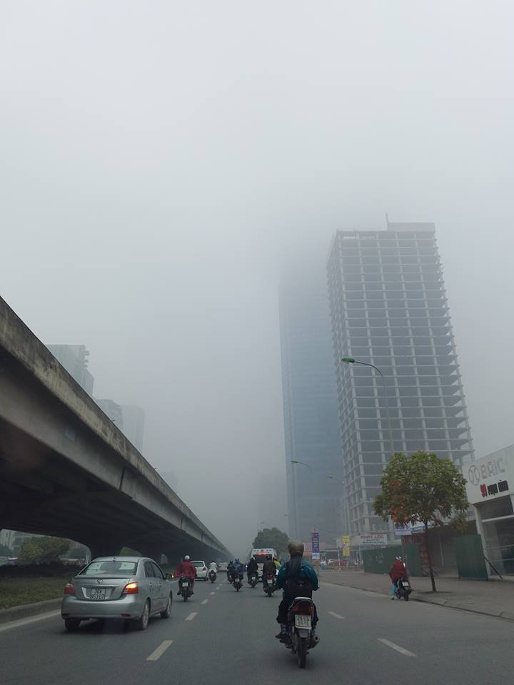 Nhiều tòa nhà cao tầng ở Hà Nội bị sương mù che lấp.