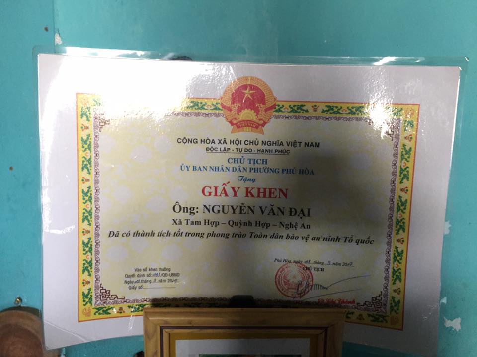 Tên khai sinh của chú Hùng là Nguyễn Văn Đại. Đây cũng chính là giấy khen của UBND phường Phú Hòa trao tặng chú Hùng sau sự việc trả lại 200.000.000 đồng cho khách để quên.