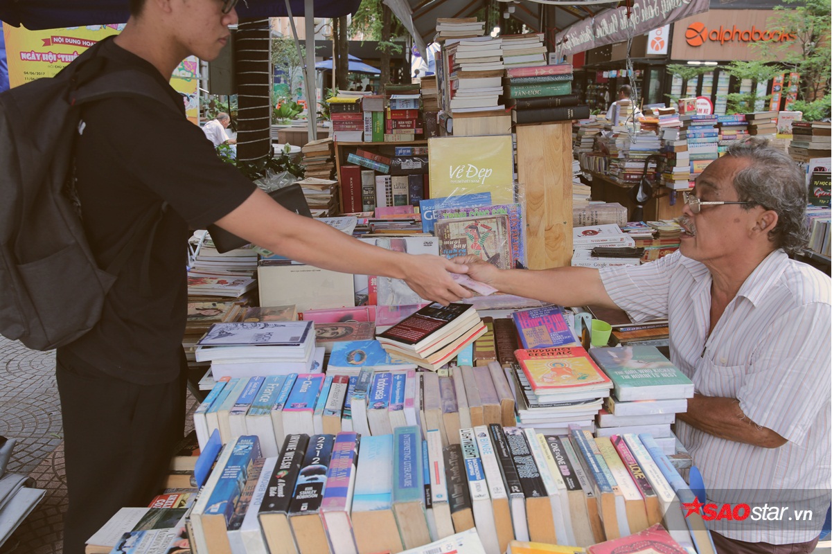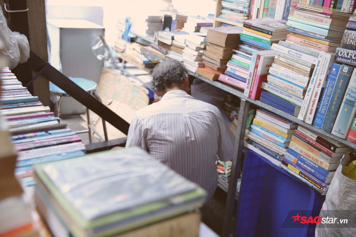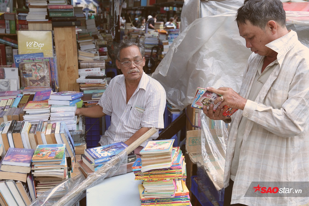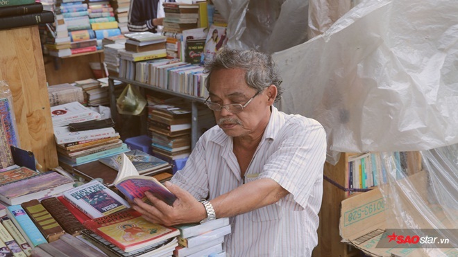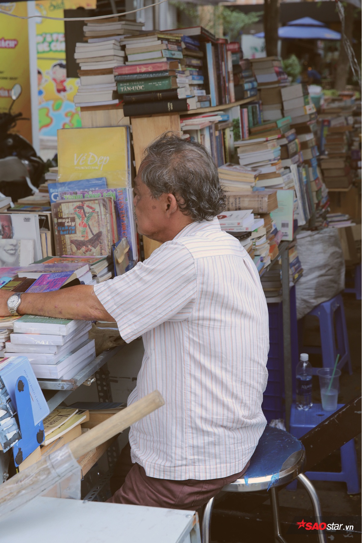 Ắt hẳn quầy sách cũ này cũng sẽ bị chúng ta vô tình lướt qua nếu như không bắt gặp hình ảnh một người đàn ông đạo mạo quay lưng lại với không gian náo nhiệt của góc đường Nguyễn Văn Bình - Hai Bà Trưng để thong thả nghiền ngẫm quyển sách giáo khoa cũ. Kể cũng lạ, với những người buôn bán thường đon đả chào mời, còn với chú trừ khi có người hỏi mua, nếu không thì mọi sầm uất của cuộc sống dần lùi về sau để có thể thả hồn vào từng trang sách. Hỏi ra mới biết chú là Hoàng Việt Long (65 tuổi), một người am tường về các loại sách “Đông tây kim cổ”.