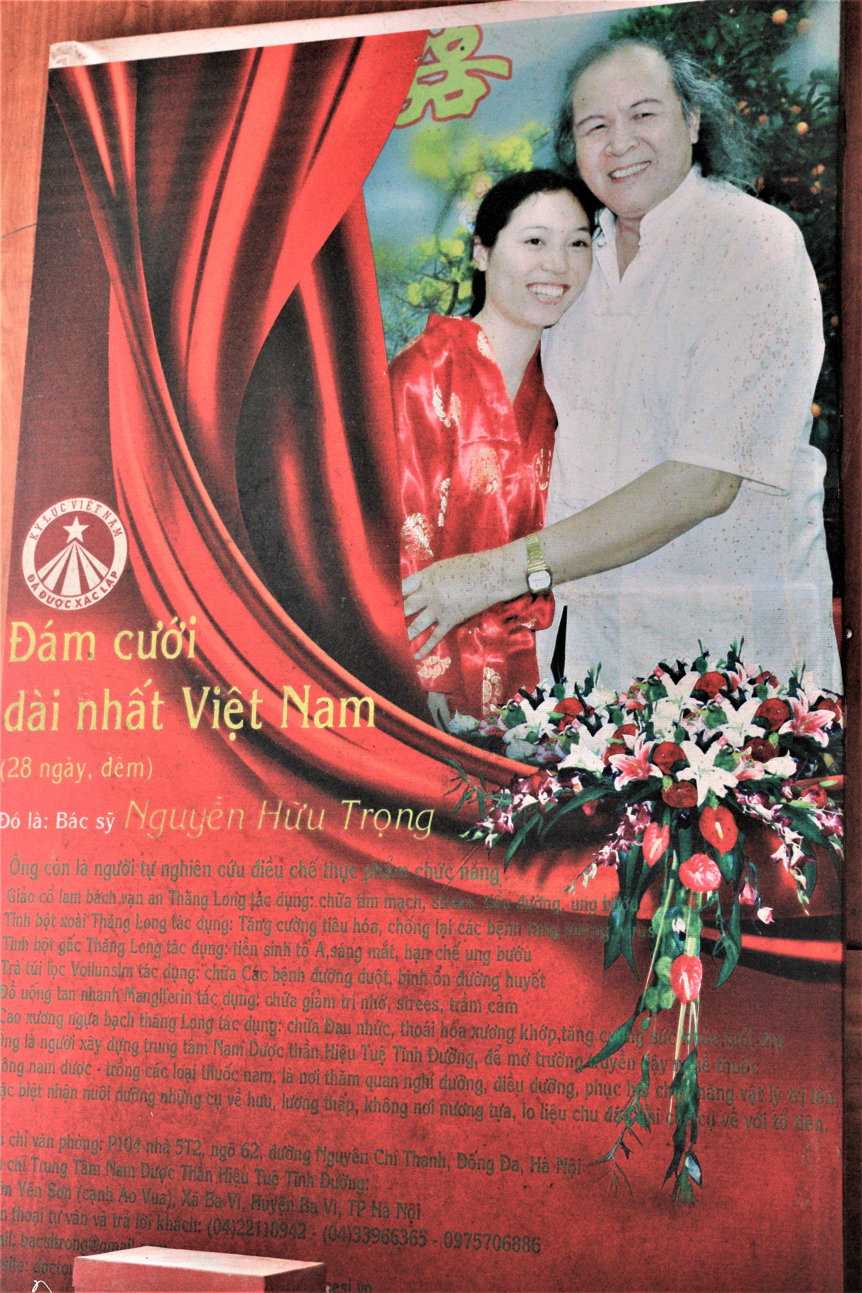 Đám cưới của ông Trọng cùng người vợ kém 53 tuổi kéo dài tới 28 ngày, đón tiếp 4.000 lượt khách. Đặc biệt, chuyện hôn sự trọng đại này được quyết định nhanh chóng. Ngày đầu tiên, ông Trọng đến hỏi cưới, hôm sau đã tổ chức tiệc mừng linh đình.