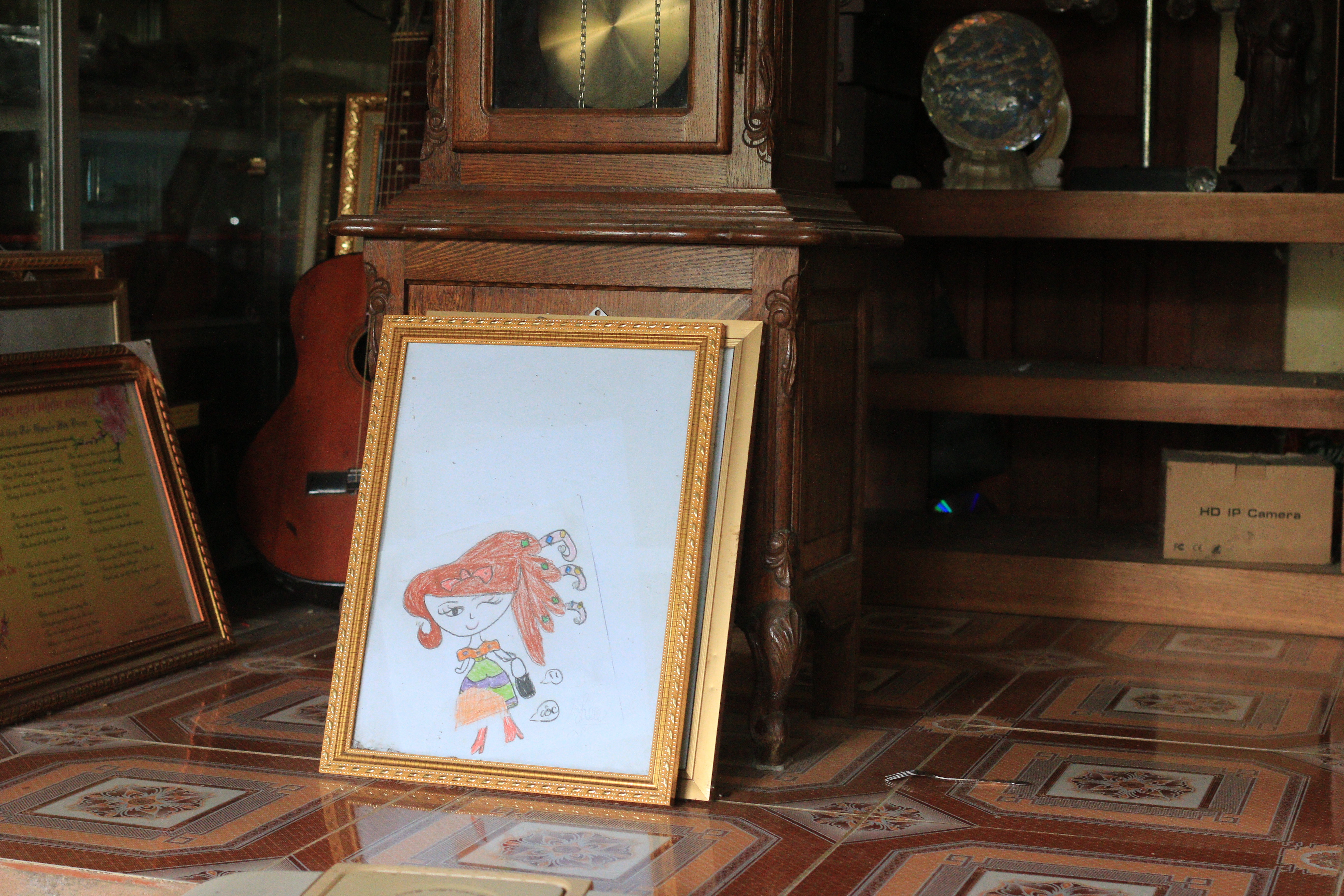Ông Trọng dạy cô con gái nhỏ học đàn.