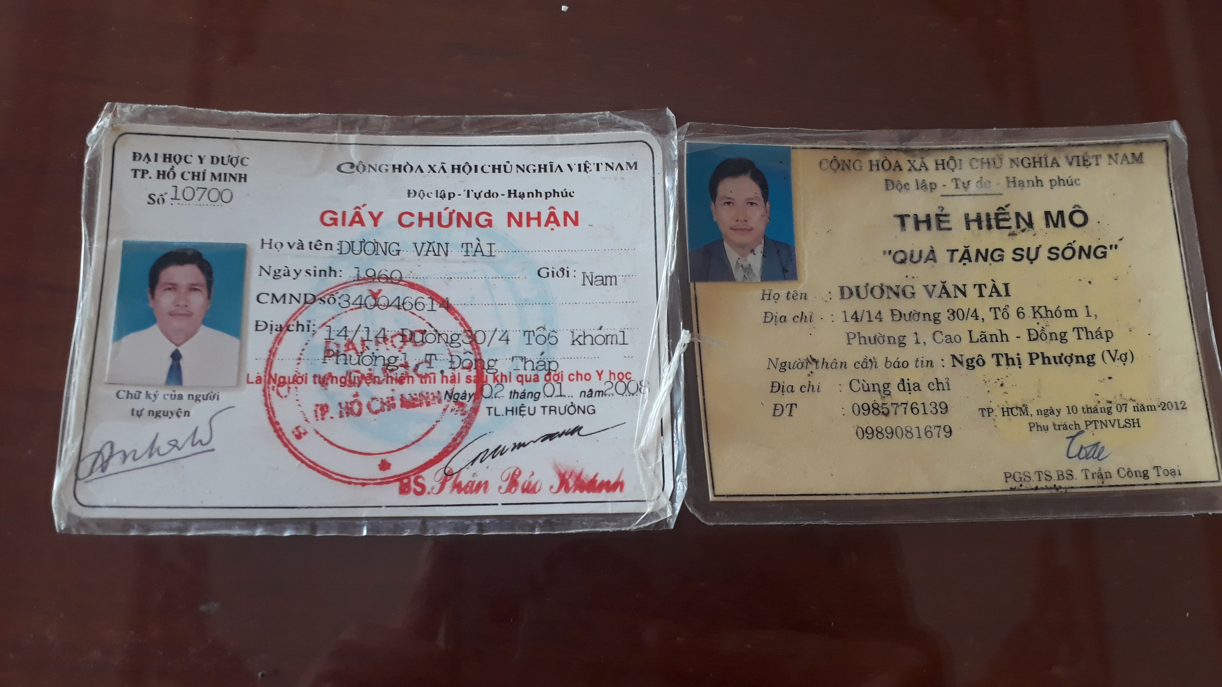 Thẻ đăng ký hiến xác và hiến mô của ông Tài