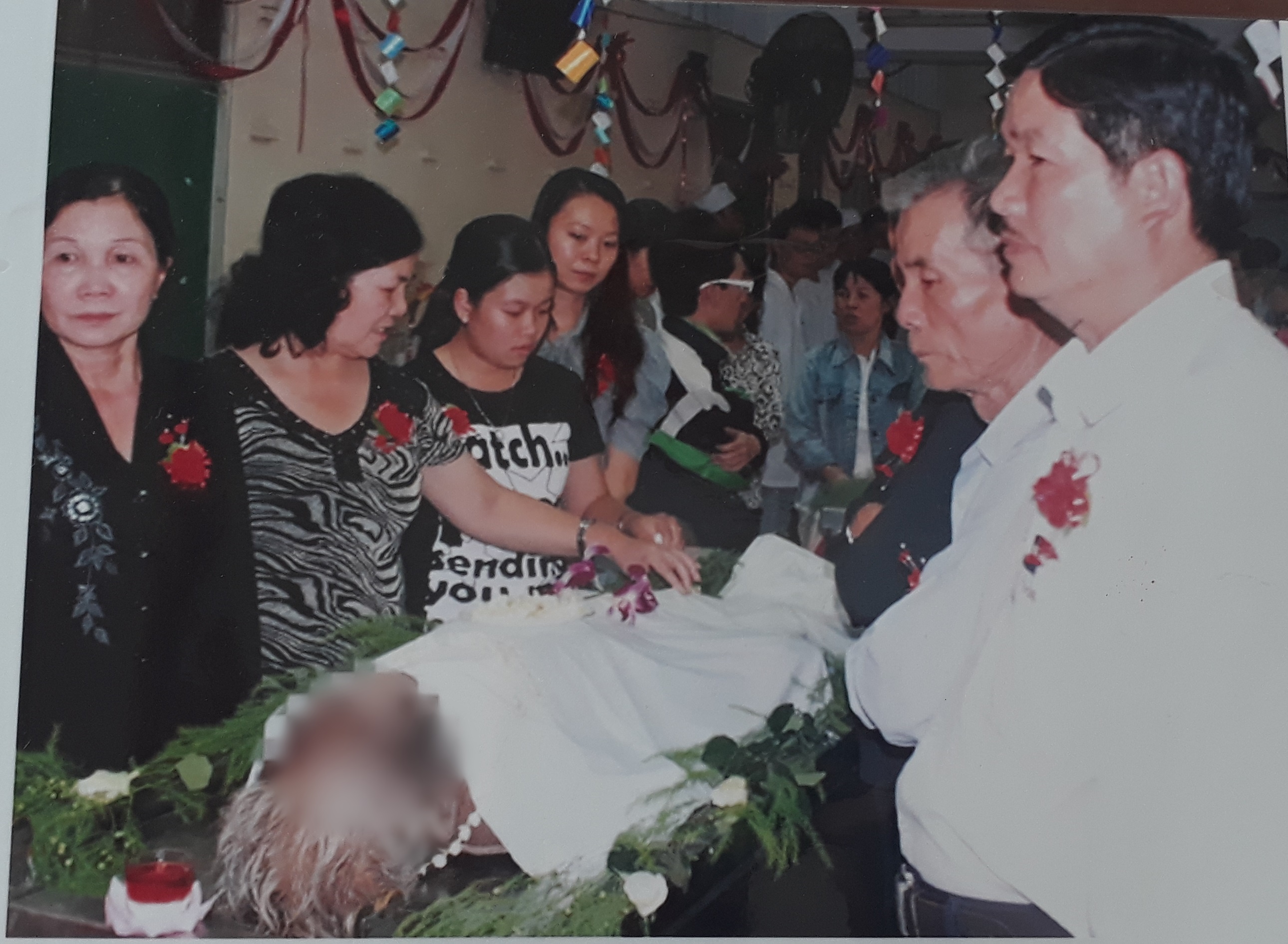 Gia đình ông Tài bên thi hài cụ Dương Tự Tín tại ĐH Y Dược TP.HCM.Ông Tài kể: “Khi đó mẹ tôi bị ốm nặng mà thấy các con làm thủ tục hiến xác chưa xong, bà cụ lo lắng giục làm nhanh. May mắn là sau đó anh em tôi cũng hoàn thành được tâm nguyện cho bà. Ngay trong đám tang của bà cũng có 3 người xin đơn đăng ký hiến xác”.