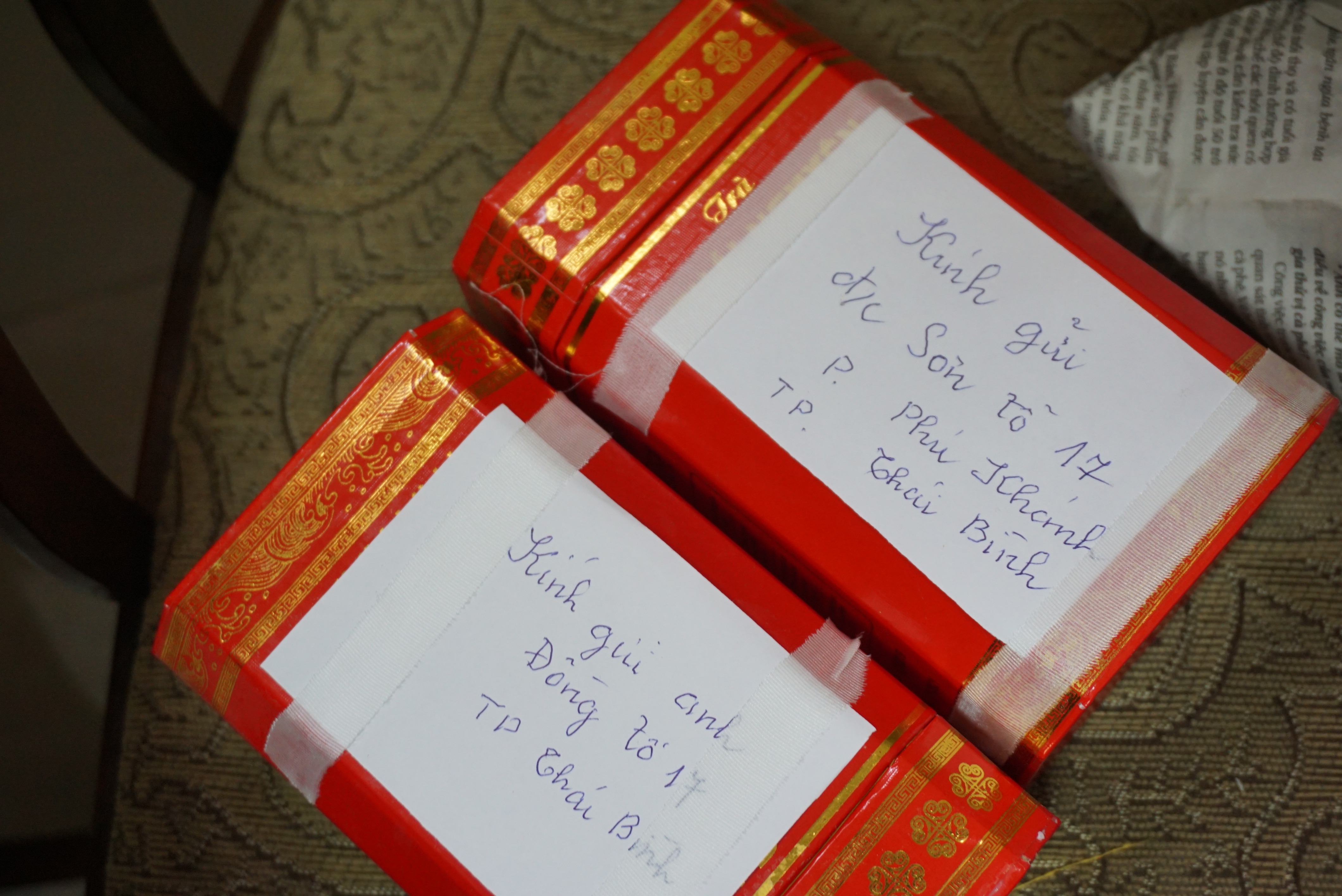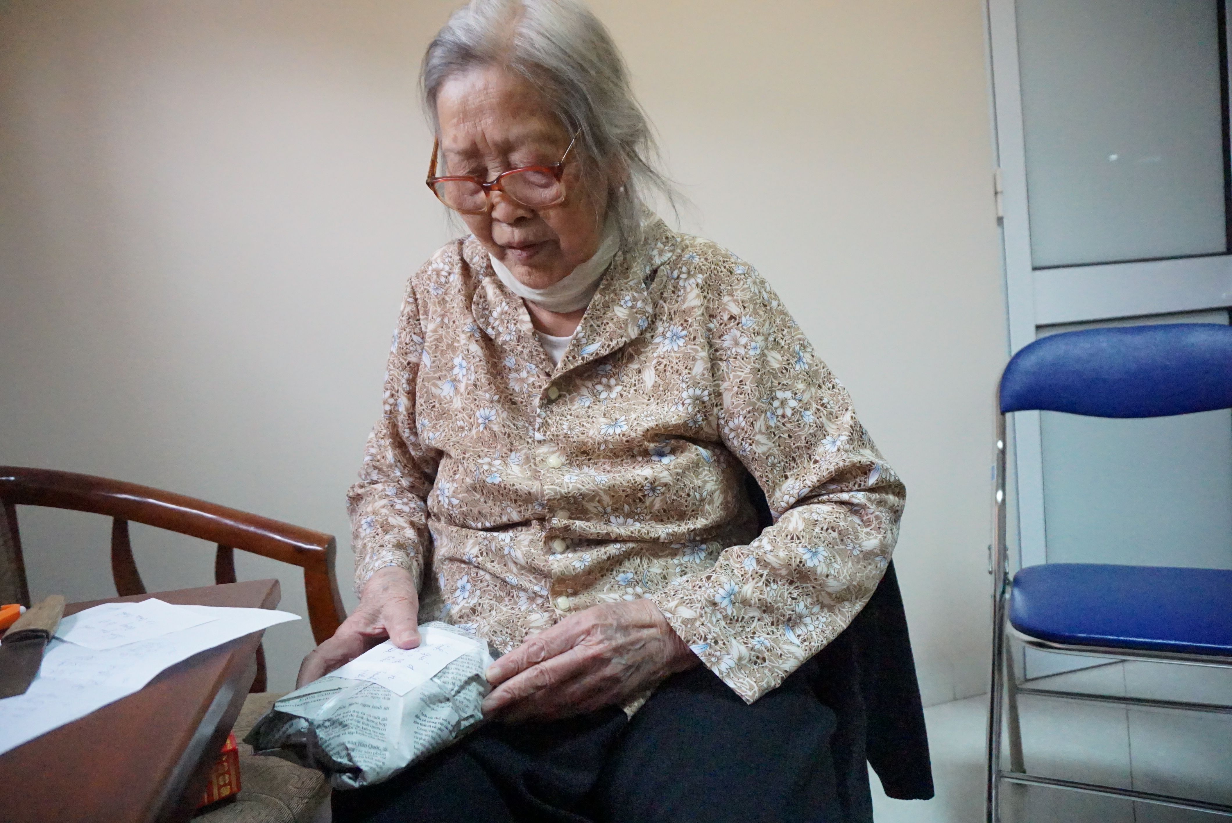 Những ngày cận Tết, bà Lưu Thị Dung (89 tuổi, hiện đang ở viện dưỡng lão ở quận Hà Đông, Hà Nội) ngồi cẩn thận lấy miếng giấy báo gói cẩn thận từng món quà rồi dán một mảnh giấy nhỏ ghi “Kính gửi đồng chí Sơn, anh Đồng… ở phường Phú Khánh, TP Thái Bình).