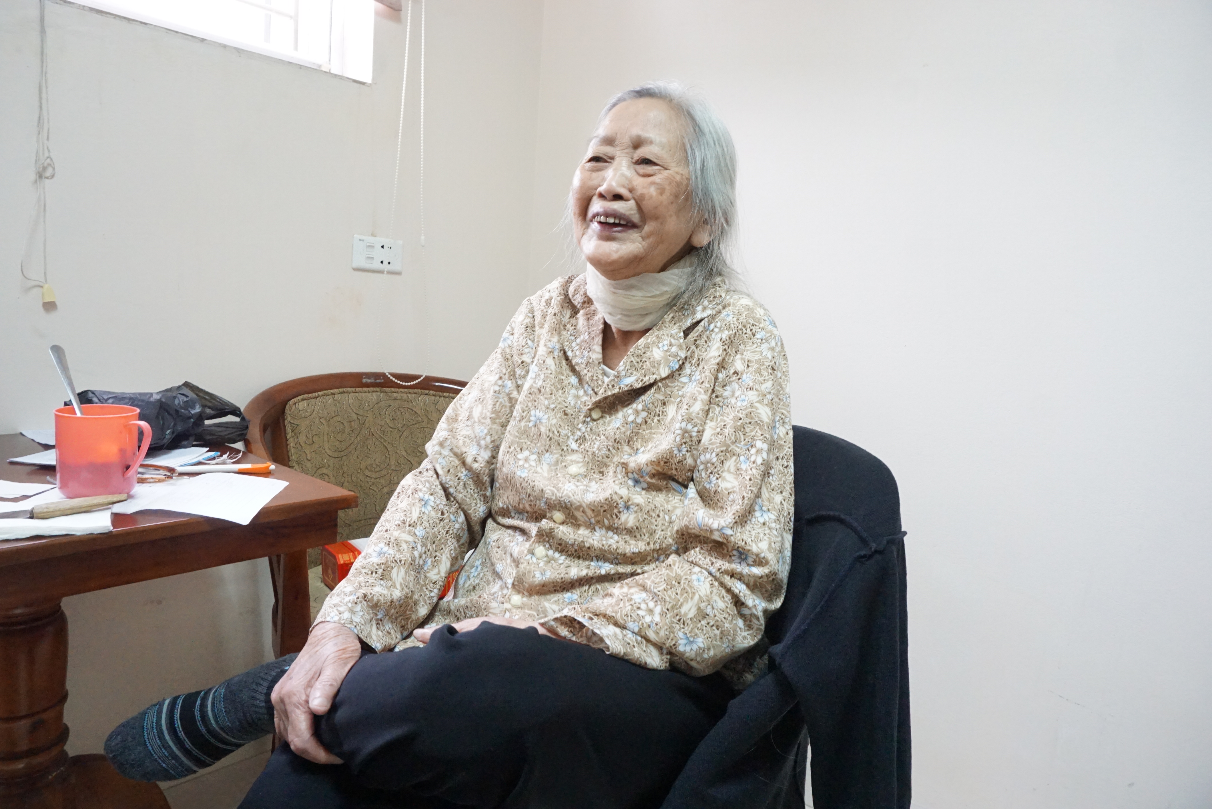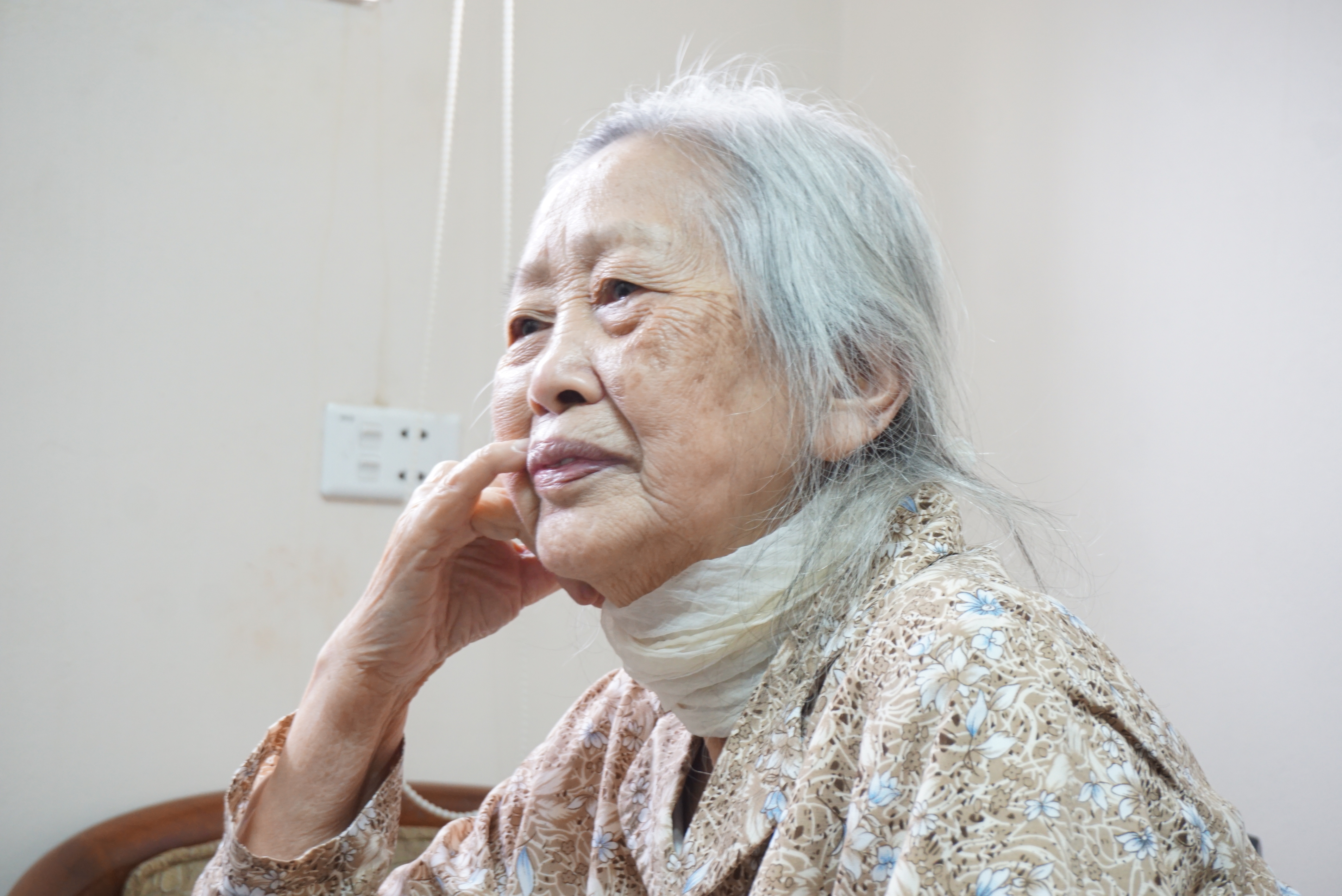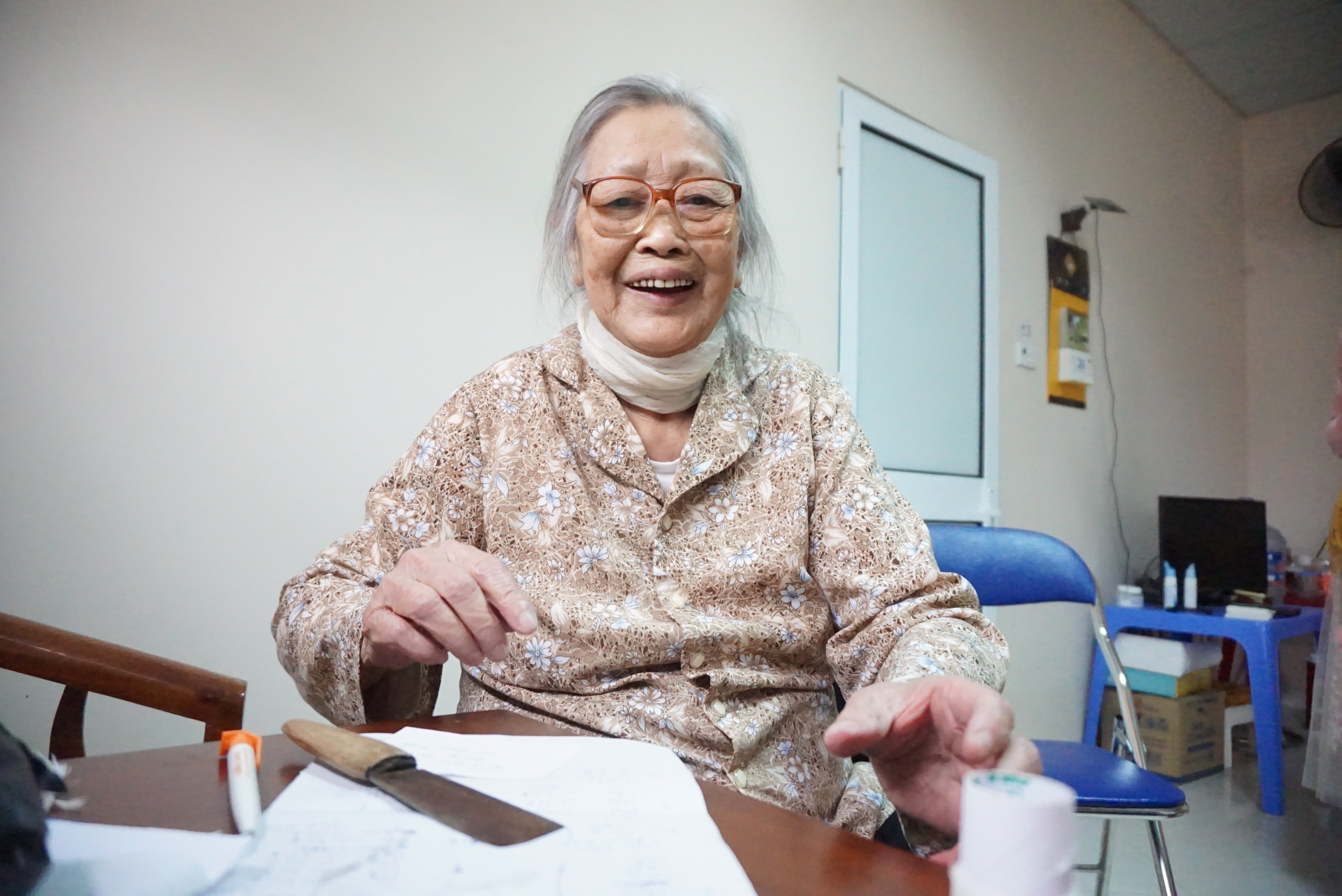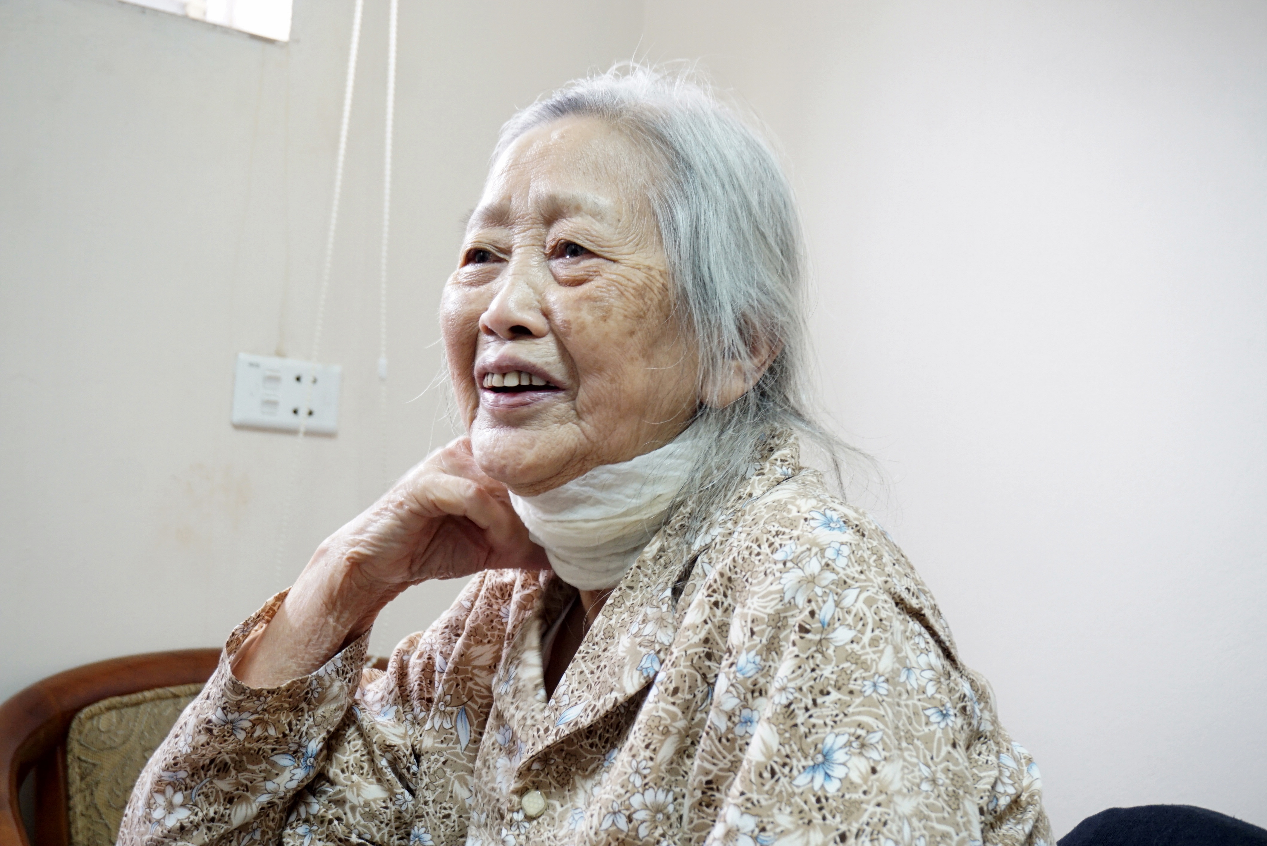 Bà Dung lạc quan vui tươi ở tuổi 89 khi ở viện dưỡng lão.