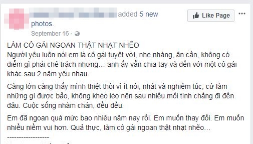 Từ khóa “gái xinh, ngoan nhưng vẫn ế” lập tức được xâu chuỗi và trở thành một chủ đề “hot” được dân mạng bàn tán sôi nổi. Nhân câu chuyện của nữ chính trong ảnh, nhiều chàng trai, cô gái cũng kể ra vô số tình huống bi đát mà nguyên nhân gây ế, cũng chỉ vì… quá ngoan hiền.