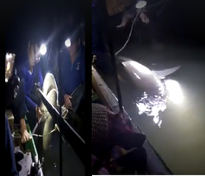 Một người chuyên thu mua cá sông đã trả 500.000 đồng/kg nhưng sau đó thấy cá lạ nên sợ không dám mua nữa. Ngư dân bắt được cá đã cột dây thừng vào mang con cá, rồi kéo đi trong đêm.