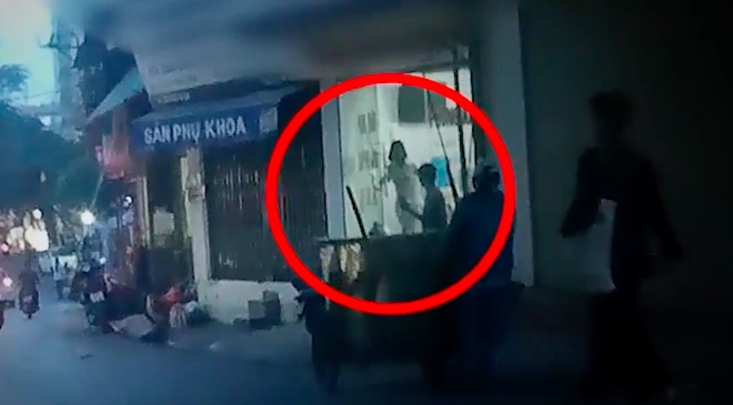 Trước cửa phòng khám trên đường Đê La Thành, vào giờ xe rác đi gom, chúng tôi thấy một người phụ nữ mặc bộ đồ trắng bước ra, trên tay cầm một túi nylon màu đen rồi vứt lên xe chở rác vừa tiến tới. Sau khi người phụ nữ này vào trong, chúng tôi liền di chuyển về phía chiếc xe chở rác đó.