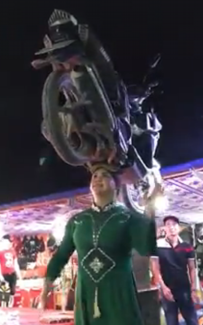 Trong suốt quá trình đội chiếc xe rất nặng như vậy, người phụ nữ này không hề thể hiện sự khó chịu hay nặng nề mà liên tục mỉm cười và múa những động tác tay uyển chuyển. Rất nhiều người đã bày tỏ sự ngưỡng mộ lẫn tò mò về nghề nghiệp đặc biệt của cô gái trên.