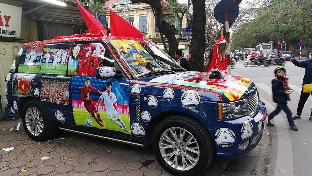 Fan thể hiện tình yêu với đội tuyển bằng cách độ xe với đủ phong cách khác nhau. Từ xe sang cho đến xe bình dân đều thay đổi “dung mạo” đầy sáng tạo để hướng về đội tuyển U23 Việt Nam.