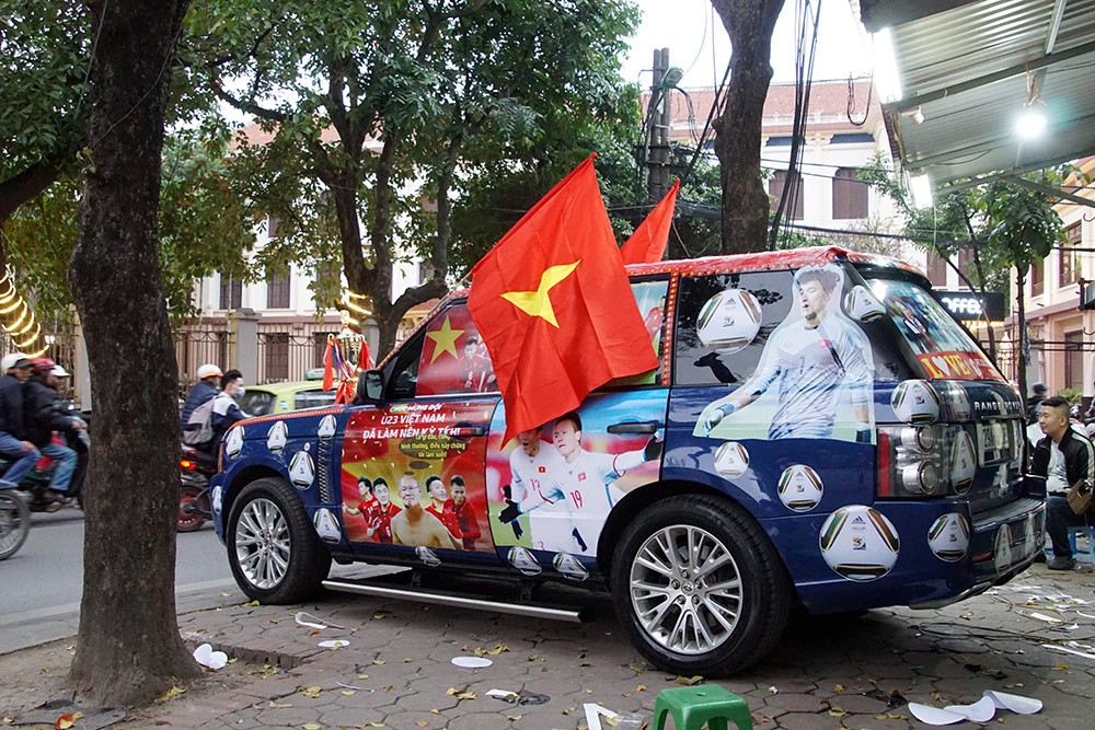 Những ngày gần đây, cộng đồng mạng liên tục chia sẻ nhiều bức ảnh về các “xế hộp” được “trang điểm” cầu kỳ khi “đi bão”, ăn mừng chiến thắng của đội tuyển U23 trước đối thủ Qatar. Bước vào trận chung kết gặp đối thủ Uzberkistan, các fan hâm mộ càng cuồng nhiệt hơn nữa và cũng vì thế, “xế” của họ càng được trang trí cầu kỳ, bắt mắt, thậm chí “lồng lộn” hơn.