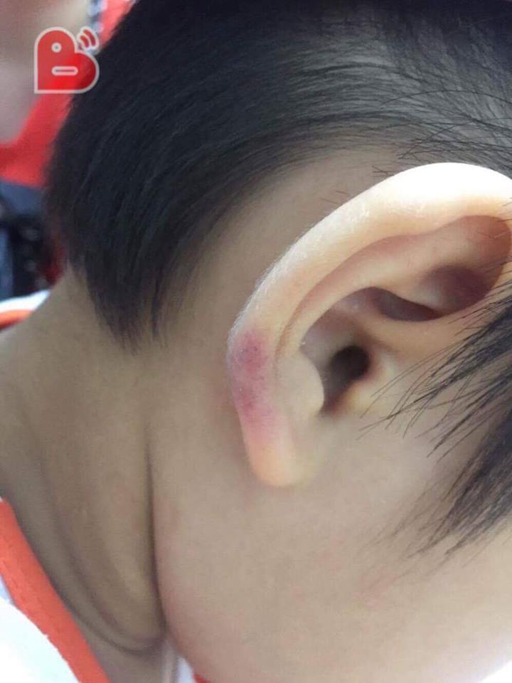 Ngoài những vết thương trên cơ thể, trên tai đứa trẻ cũng xuất hiện vết bầm tím.