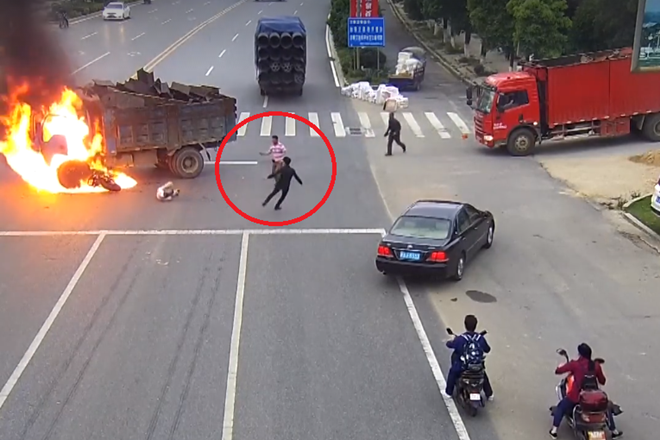 Thế nhưng, vào thời điểm xảy ra hỏa hoạn, con người có rất ít thời gian để phản ứng, suy nghĩ. Nếu chẳng may chiếc xe tải phát nổ thì sẽ vô cùng nguy hiểm, không những chỉ với người đi xe máy mà cả những người giúp đỡ cũng bị đe dọa trực tiếp đến tính mạng.