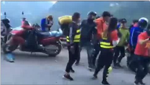 Clip ghi lại cảnh nhóm phượt thủ “quẩy hết mình” ở Mã Pí Lèng. Nguồn: Hóng.