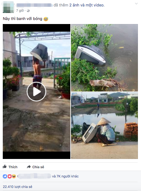 “Trước đây thấy nhiều ảnh đập vỡ tivi vì thua bóng nhưng vứt cả cái tivi xuống ao như ông anh thì độc nhất vô nhị luôn.”