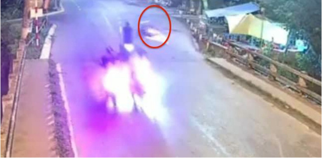 Chiếc xe máy chạy tốc độ cao gây tai nạn kinh hoàng. Ảnh cắt từ clip.
