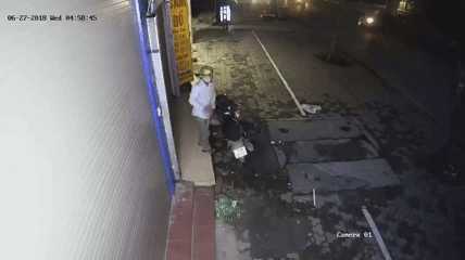 Theo đoạn clip ghi lại, nam thanh niên đeo khẩu trang dừng xe trước cửa nhà, ngó nghiêng quan sát, khi thấy xung quanh khá vắng người qua lại, thanh niên này đã dùng cây gậy dài chuẩn bị trước đó, đưa lên và nhanh tay kéo rơi chiếc camera. Sau đó, đối tượng này nhanh chóng bỏ chạy. Tuy nhiên, chiếc camera bên cạnh đã kịp lưu lại khá rõ nét hình ảnh cũng như biển số xe của thanh niên này.