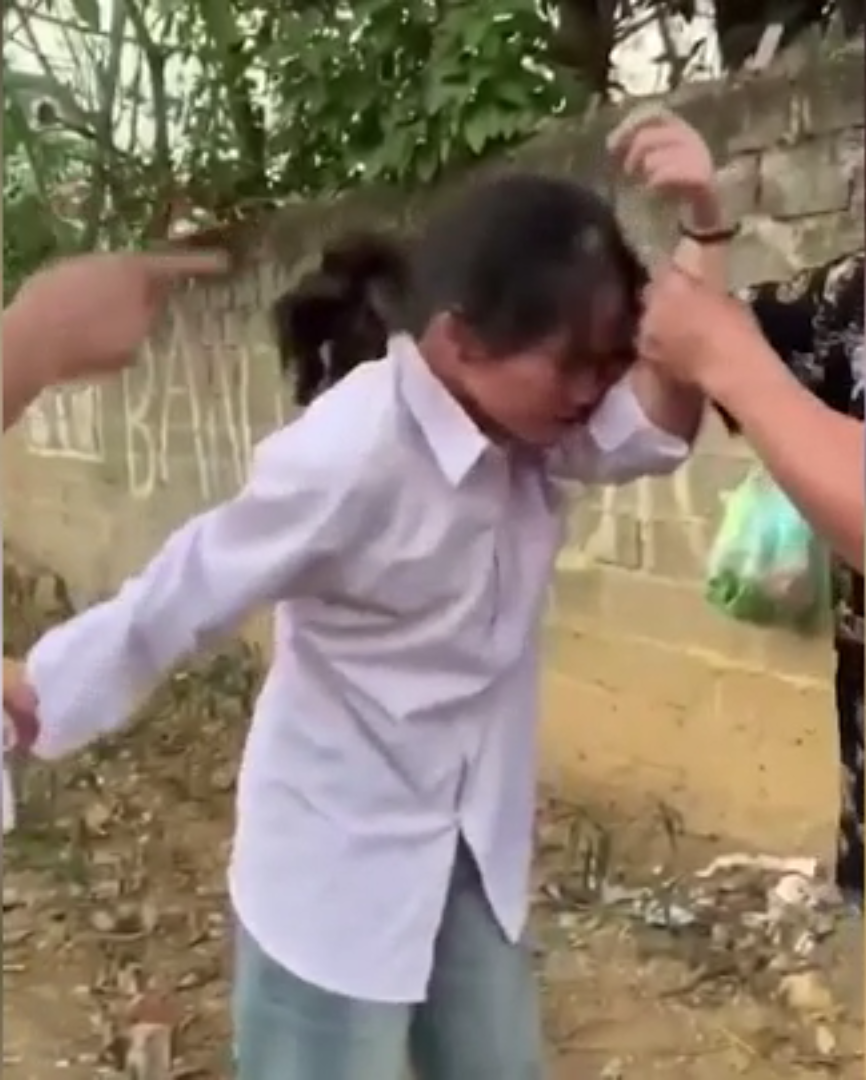 Theo hình ảnh trong đoạn clip, nữ sinh mặc áo trắng đồng phục bị 2 người đàn ông giữ chặt tay trong lúc có khoảng 3 người lớn khác vây quanh lớn tiếng liên tục mắng chửi. Theo các phụ huynh này, nữ sinh trên đã nhiều lần đánh hội đồng con gái mình, thậm chí còn quay clip lại và đến nhà tìm gặp.