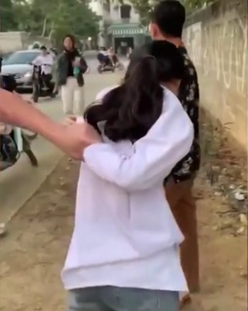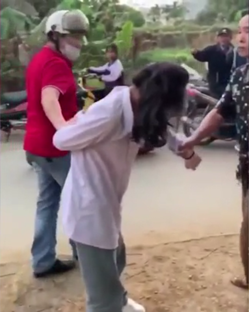 Một vài người chứng kiến cũng lên tiếng can ngăn: “Anh không được đánh nó”. Tuy nhiên, nhóm phụ huynh càng lớn tiếng hơn và một mực cho rằng nữ sinh này đã đánh bạn học. Một người đàn ông nói: “Con này rất láo. Hôm qua tao đi làm mày dẫn cả 10 thằng lên nhà tao. Con này bé nhưng rất gớm mặt”.