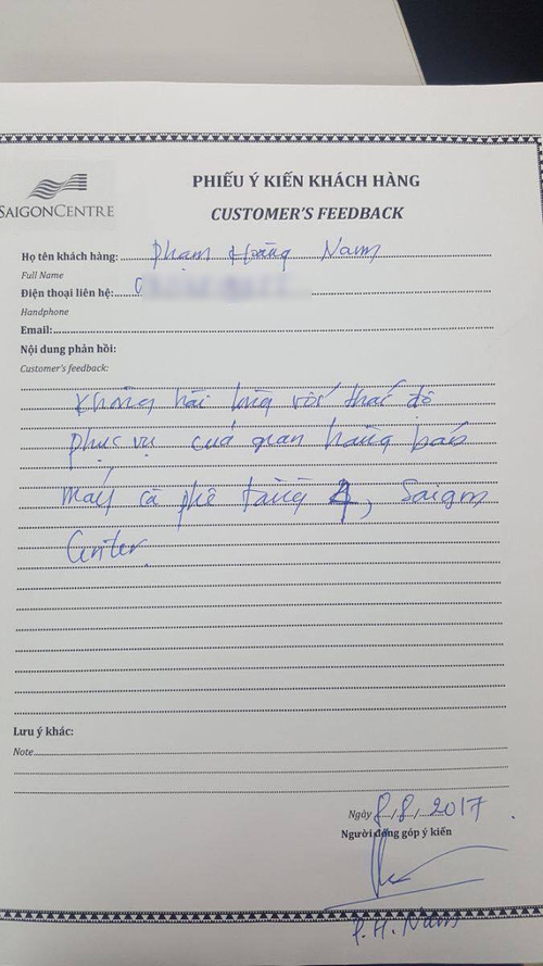 Người đàn ông ghi tên là Phạm Hoàng Nam trong phiếu ý kiến khách hàng