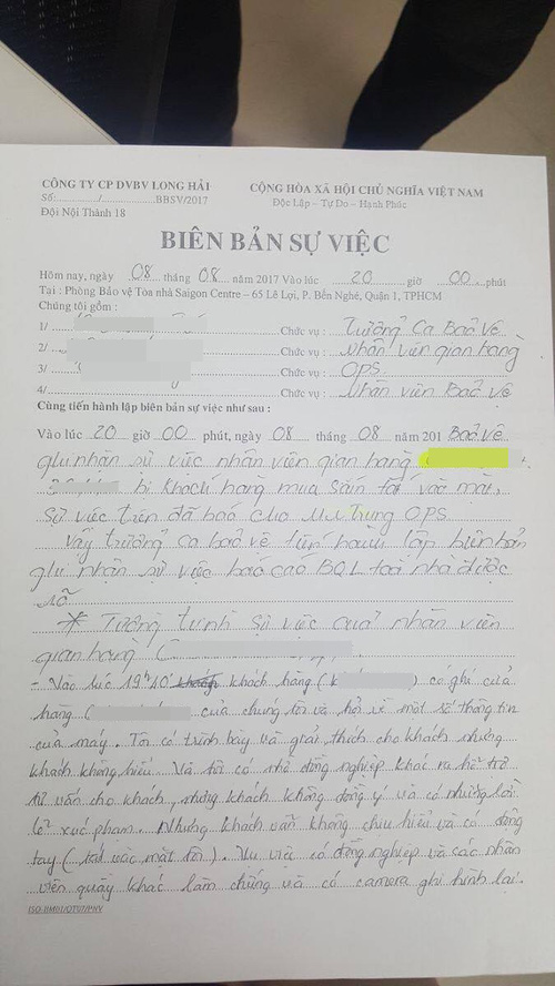 Ngay sau khi vụ việc xảy ra, lực lượng an ninh của trung tâm thương mại đã ngay lập tức có mặt lập biên bản. Tuy nhiên, theo chia sẻ của người đăng tải bài viết, người đàn ông không nói tên thật khi lực lượng an ninh can thiệp vào vụ việc. Thay vào đó là cái tên Phạm Hoàng Nam.
