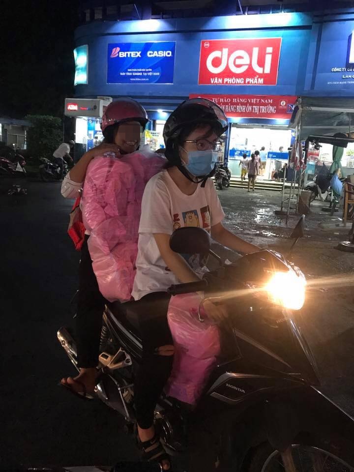 Một nhóm các bạn nữ tổ chức đi phát quà từ thiện cho người nghèo vào ngày rằm tháng 7.