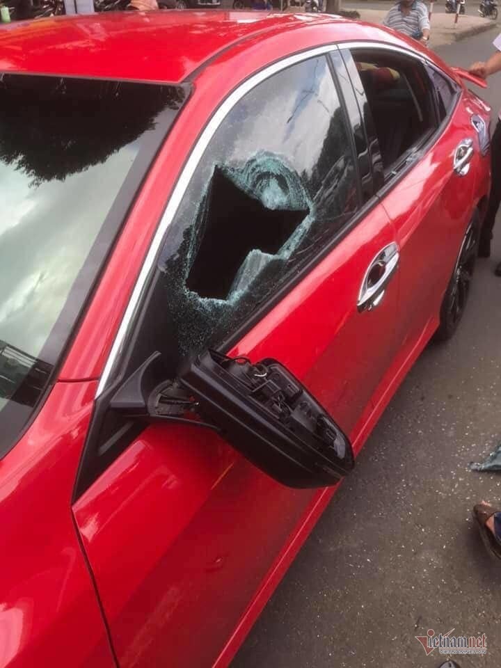 Ôtô bị Lê Văn Thành đập bể kính vì không cho vượt. Ảnh: báo Vietnamnet