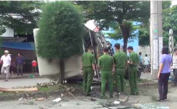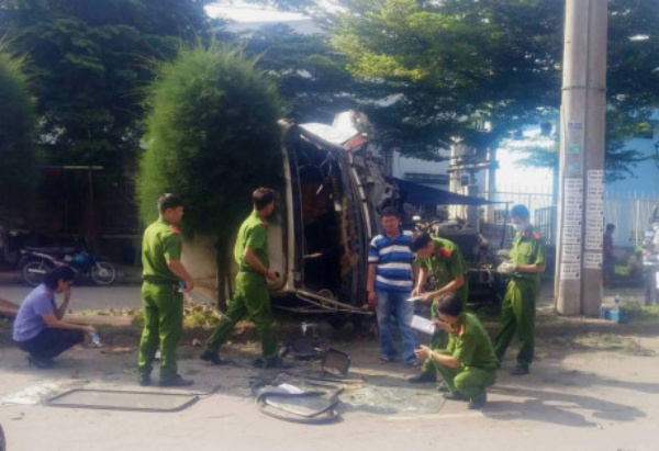 Cú va chạm mạnh đã khiến nam thanh niên đi xe máy văng xa khoảng hơn 10 mét. Chiếc xe container sau khi húc văng xe máy đã đâm vào cột điện phía trước khiến phần đầu máy bị bung nát. Nam tài xế tử vong tại chỗ. Cách đó khoảng 50 m, chiếc xe máy biến dạng. Nam thanh niên đi xe máy bị chấn thương rất nặng, được đưa đi cấp cứu trong tình trạng nguy kịch.