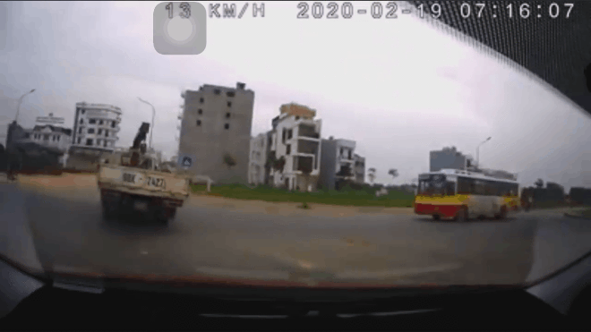 Cú tông trực diện của tài xế xe buýt vào chiếc xe tải đang di chuyển