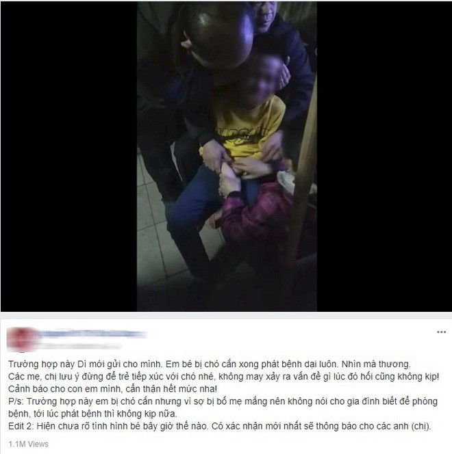 Theo chia sẻ của một người dùng mạng xã hội, em bé này bị chó cắn nhưng sợ bị bố mẹ mắng nên không nói cho gia đình biết để phòng bệnh, tới lúc phát bệnh thì không kịp nữa. Kết quả là em bị phát bệnh dại và liên tục có các biểu hiện như thè lưỡi, kêu ra các âm thanh như chó sủa, liên tục kêu la, ôm đầu do đau đầu…