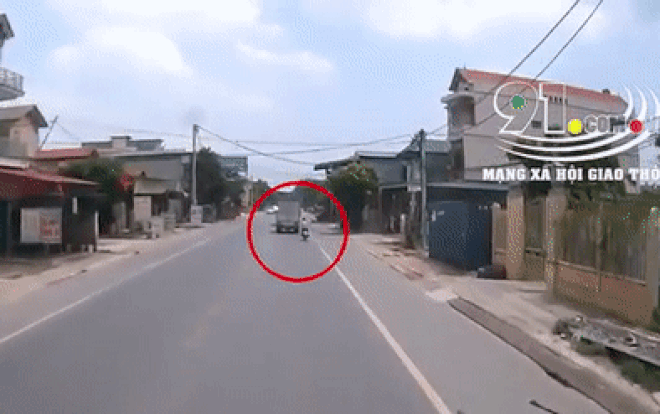 Trên mạng xã hội đang xôn xao trước đoạn clip ghi lại cảnh tai nạn giao thông giữa xe máy và xe tải.