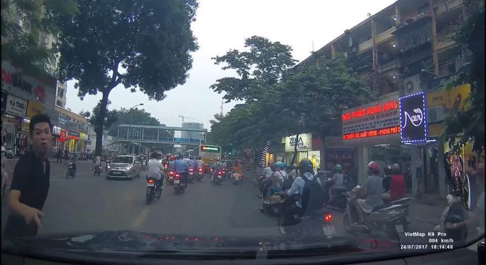 Cụ thể, ngày 24/7, tài khoản facebook T.D.V đã đăng tải thông tin về vụ việc như sau: “Khoảng 17h30 hôm nay tôi lái ô tô đi từ đường Xã Đàn rẽ trái sang Phạm Ngọc Thạch. Đi được 1 đoạn thì thấy 1 tay thanh niên (có ảnh và clip kèm theo) đi bộ áp sát xe tôi, đập kính và yêu cầu hạ kính xuống nói chuyện.
