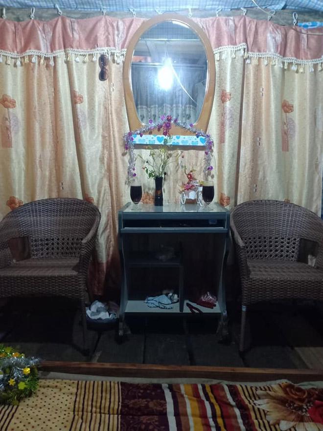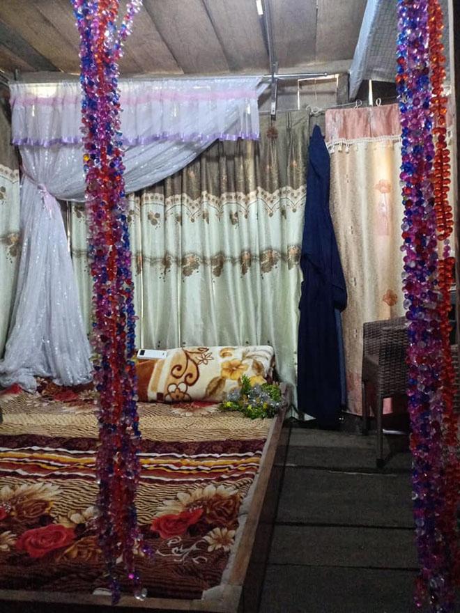 Mẹ chồng tôi, em chồng và bà con họ hàng thì tích cực xâu vòng, làm dây hoa cho tôi. Bố chồng thì cùng chồng tôi làm lại hệ thống điện. Đến khi phòng cưới hoàn thành, ai cũng khen phòng cưới của tôi như phòng công chúa”, cô dâu 61 tuổi cười nói hạnh phúc.