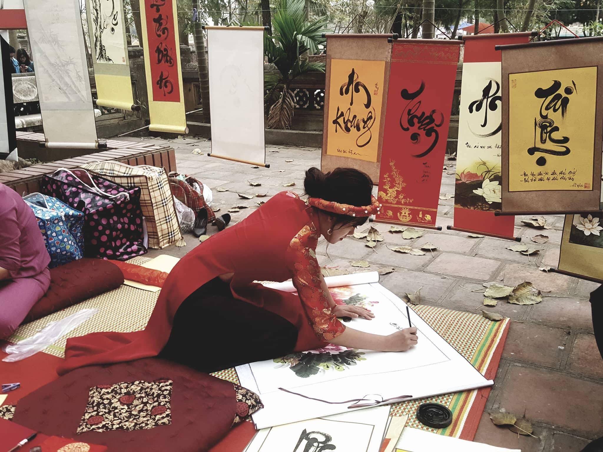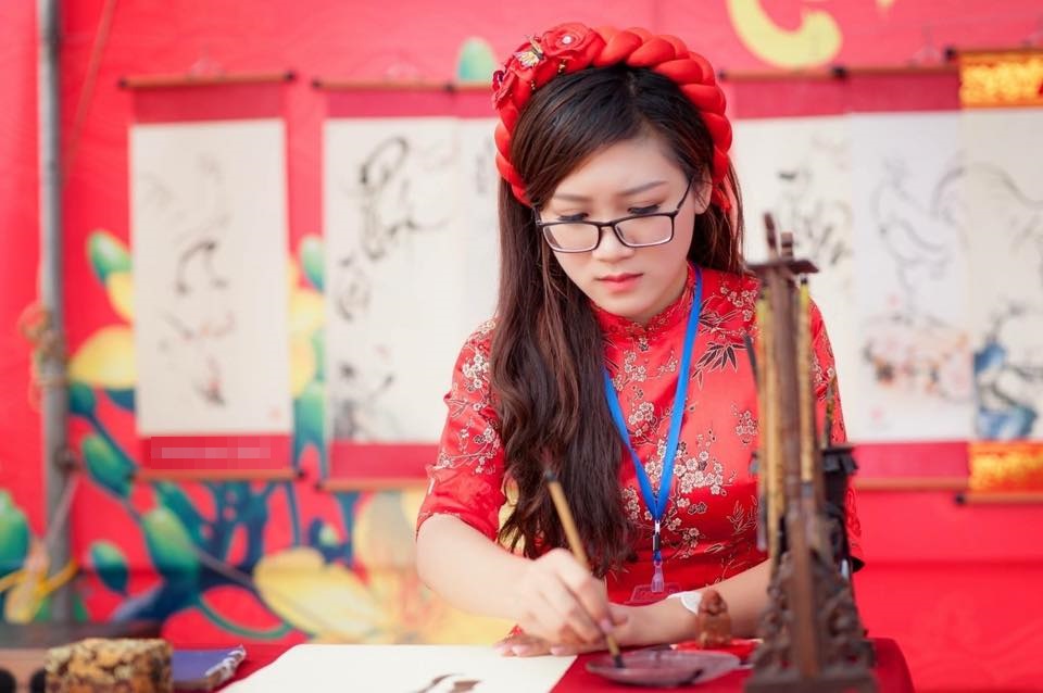 Tính cả năm nay là 5 năm cô gái trẻ cho chữ đầu năm - một công việc mà cô chưa hề nghĩ tới bởi cô đến với thư pháp là do tình cờ biết tới.
