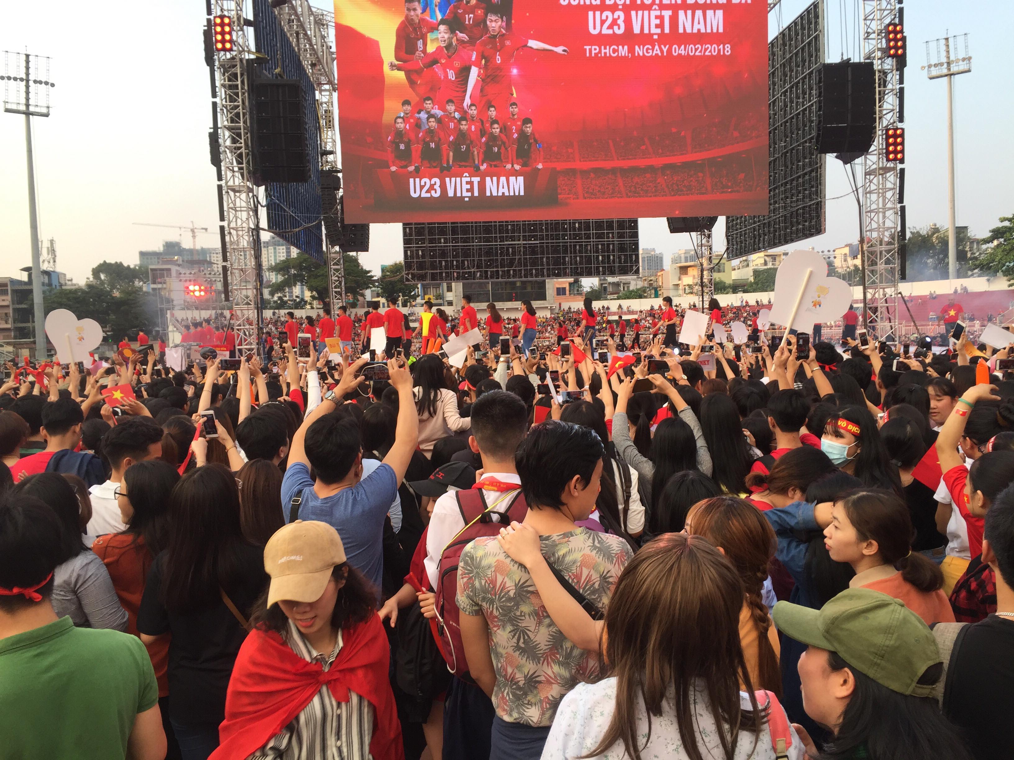Sau chiến tích rực rỡ tại vòng chung kết U23 châu Á 2018 vừa diễn ra tại Trung Quốc, thầy trò HLV Park Hang Seo đã được người hâm mộ cả nước chào đón nồng nhiệt trong ngày trở về, và trong chiều 4/2, đội U23 Việt Nam tiếp tục có buổi giao lưu cùng các khán giả TP.HCM tại SVĐ Thống Nhất.