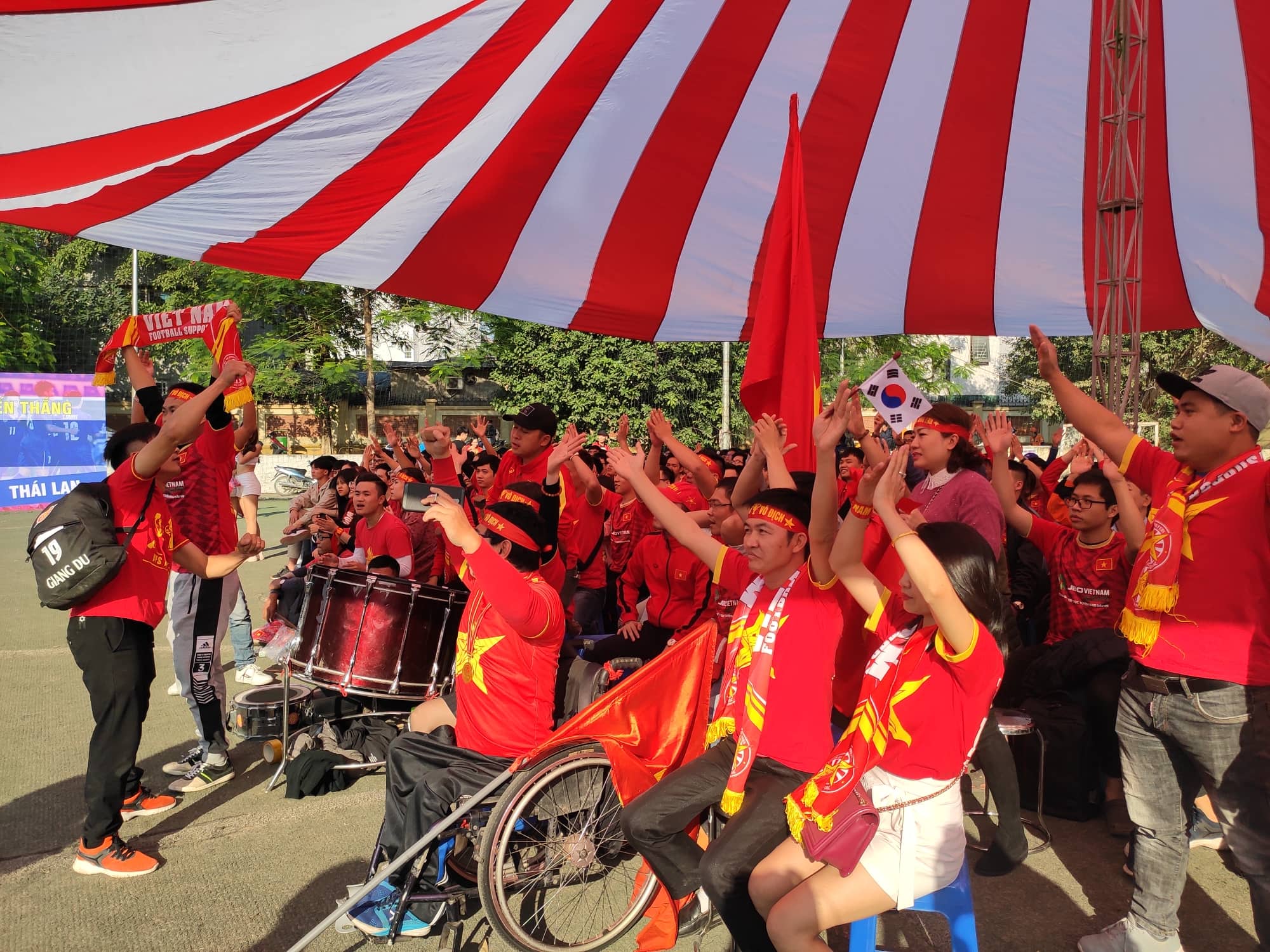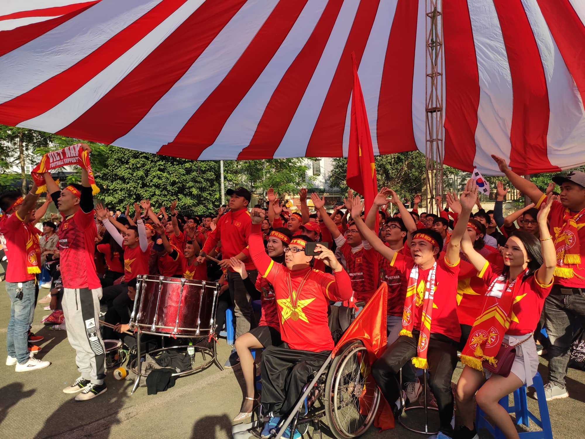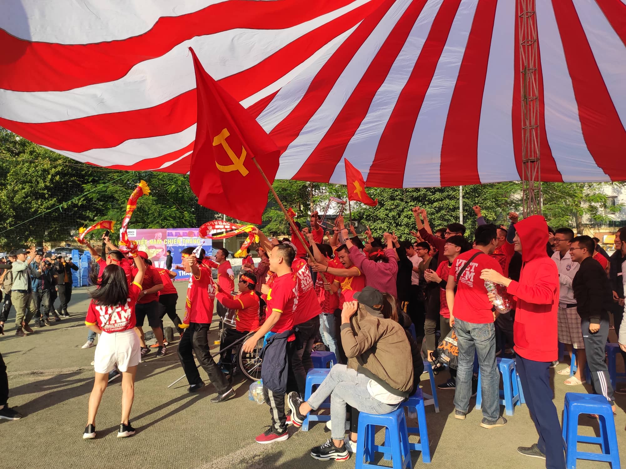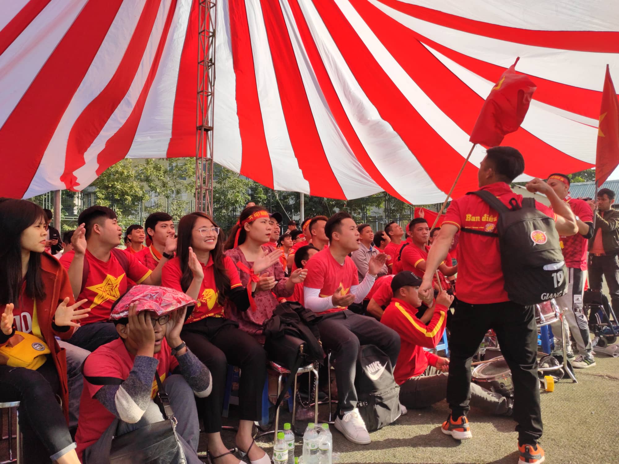 Chiều 5/12, trận đấu giữa U22 Việt Nam và U22 Thái Lan tại bảng B môn bóng đá nam SEA Games 30 đã diễn ra trên sân Binan (Philippines). Dù không có điều kiện để sang tận nơi trực tiếp cổ vũ cho các thầy trò HLV Park Hang Seo trong trận đấu quan trọng này tuy nhiên tại Hà Nội có rất đông cổ động viên tập trung theo dõi qua màn hình lớn cổ vũ tinh thần có các cầu thủ.