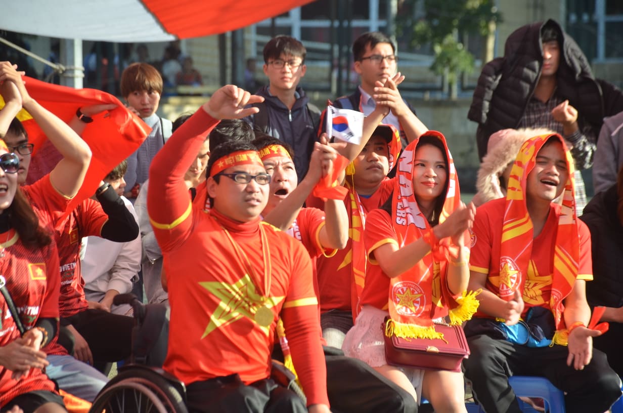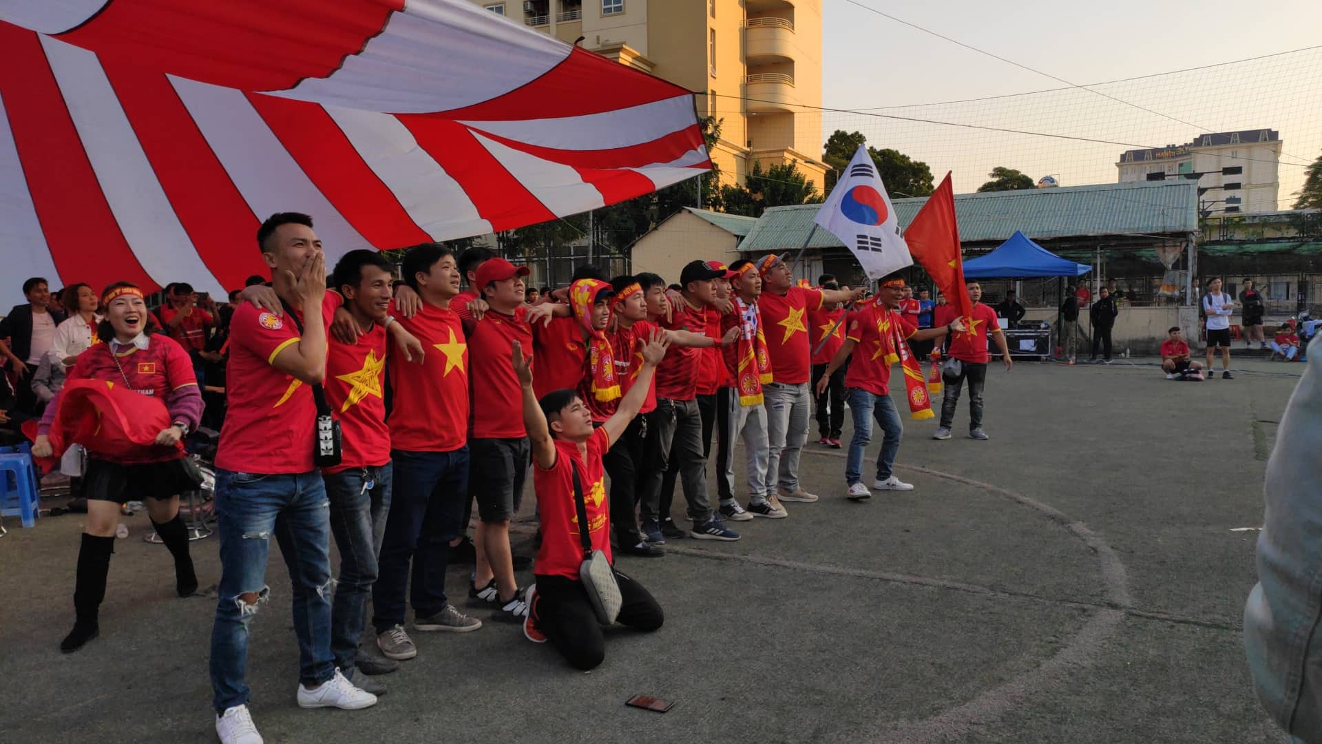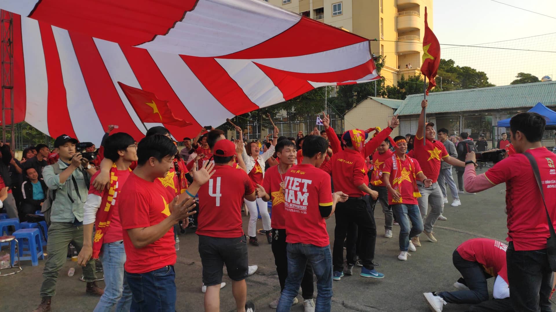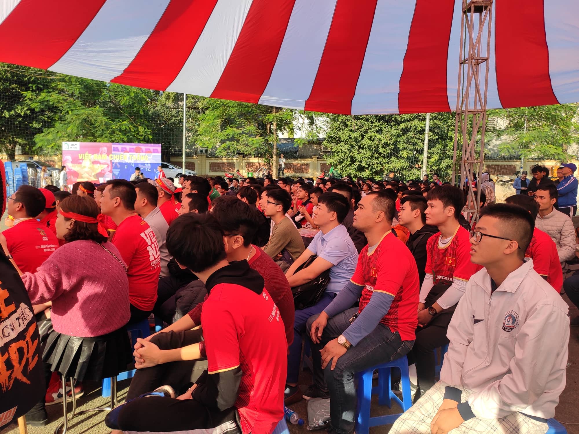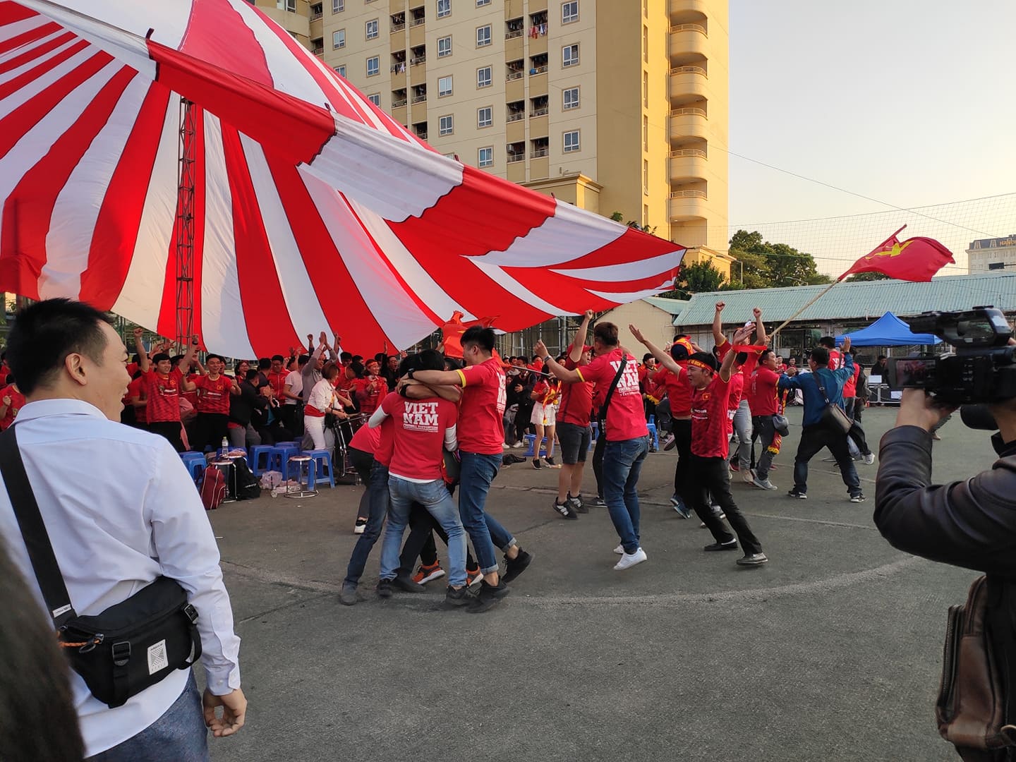 Chiều 5/12, trận đấu giữa U22 Việt Nam và U22 Thái Lan tại bảng B môn bóng đá nam SEA Games 30 đã diễn ra trên sân Binan (Philippines). Dù không có điều kiện để sang tận nơi trực tiếp cổ vũ cho các thầy trò HLV Park Hang Seo trong trận đấu quan trọng này tuy nhiên tại Hà Nội có rất đông cổ động viên tập trung theo dõi qua màn hình lớn cổ vũ tinh thần có các cầu thủ.