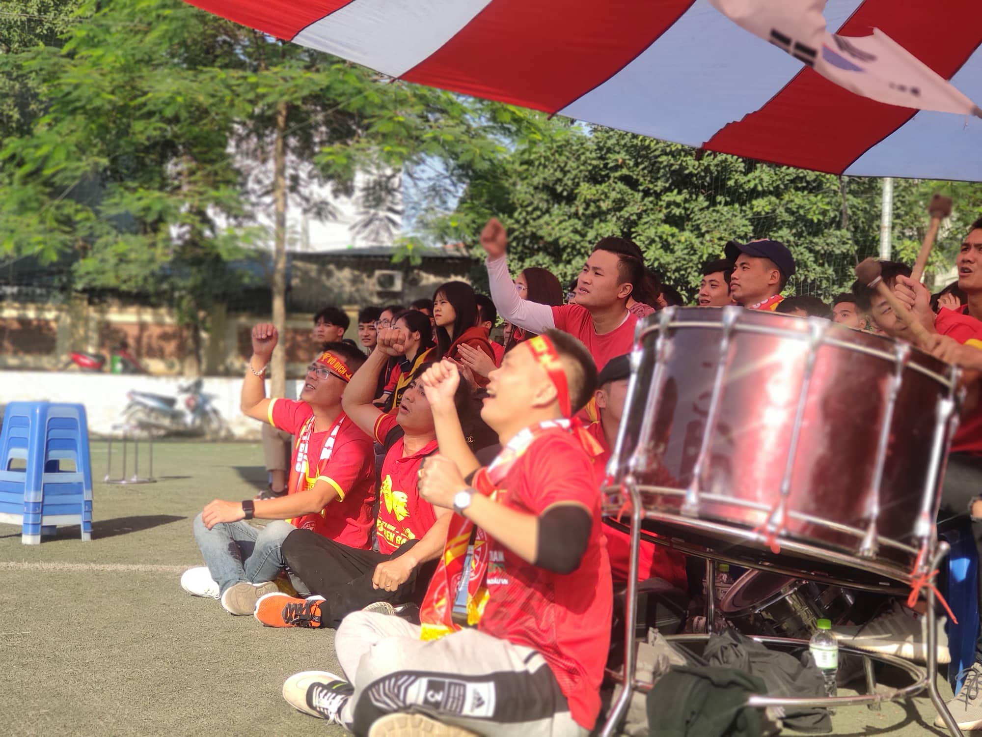 Thời tiết tại Hà Nội ngoài trời khá nắng nhưng tinh thần cổ vũ của của động viên luôn dâng cao.