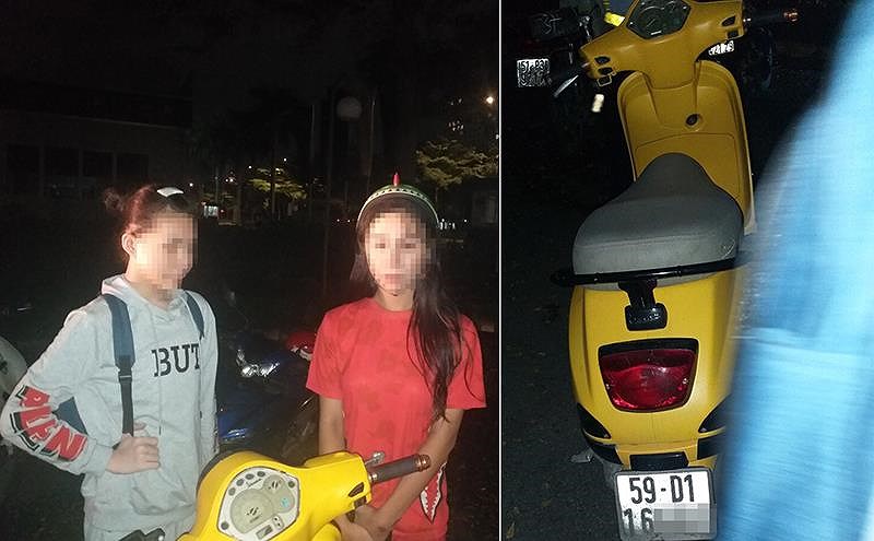 Thiếu niên “chị hiểu hông” cùng đồng bọn và chiếc xe tang vật. (Ảnh: PLO).