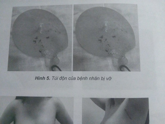 Chị N. sau đó đã được phẫu thuật lấy túi độn vỡ, bơm rửa và thay túi mới.