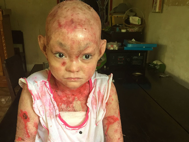 Đó là Nguyễn Thị Thùy Dương, ngụ ấp 6, xã Phương Thịnh, H.Cao Lãnh, Đồng Tháp. Ở tuổi thanh xuân nhưng hình hài Dương như học sinh tiểu học. Căn bệnh quái ác cô mang từ bé là ly thượng bì bóng nước, đến nay chưa có thuốc đặc trị.