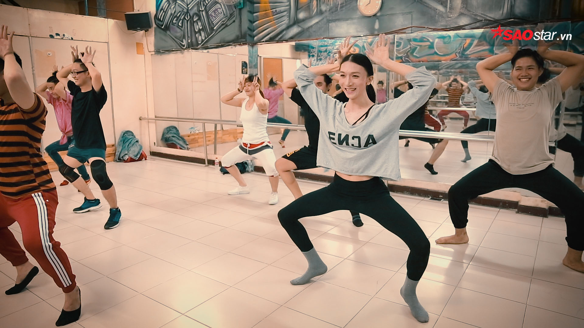 Ngoài công việc ở xưởng may, Vi còn là thành viên của nhóm nhảy JS band.