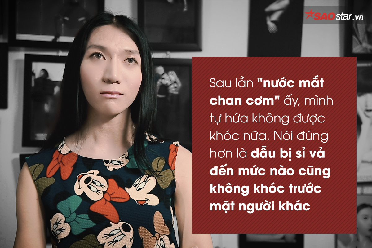 Rồi khó khăn đâu chỉ dừng lại ở đó, vẻ ngoài yểu điệu cộng thêm dáng người ốm yếu, không ít lần cô nàng phải đối mặt với những lời châm chọc: “Bê đê thì làm đươc gì”. “Nhớ lúc nghe được những lời đó nước mắt mình rơi lã chã xuống chén cơm. Sau lần “nước mắt chan cơm” ấy, mình tự hứa với lòng không được khóc nữa. Nói đúng hơn là dẫu bị sỉ vả đến mức nào cũng không được khóc trước mặt người khác. Và nhờ thế mình mạnh mẽ hơn hẳn. Họ bê 1 cây dù, mình phải bê 2 cây dù, người ta phục vụ tốt thì mình phải nhanh nhẹn hơn thế,… mình muốn khẳng định mình làm được nhiều thứ hơn những gì họ nghĩ”.