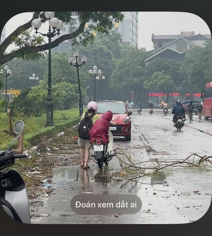 Không những vậy, để giữ an toàn cho "em nhỏ", cô gái còn cẩn thận dắt bộ xe máy qua đoạn đường đang có mưa to, gió lớn.'