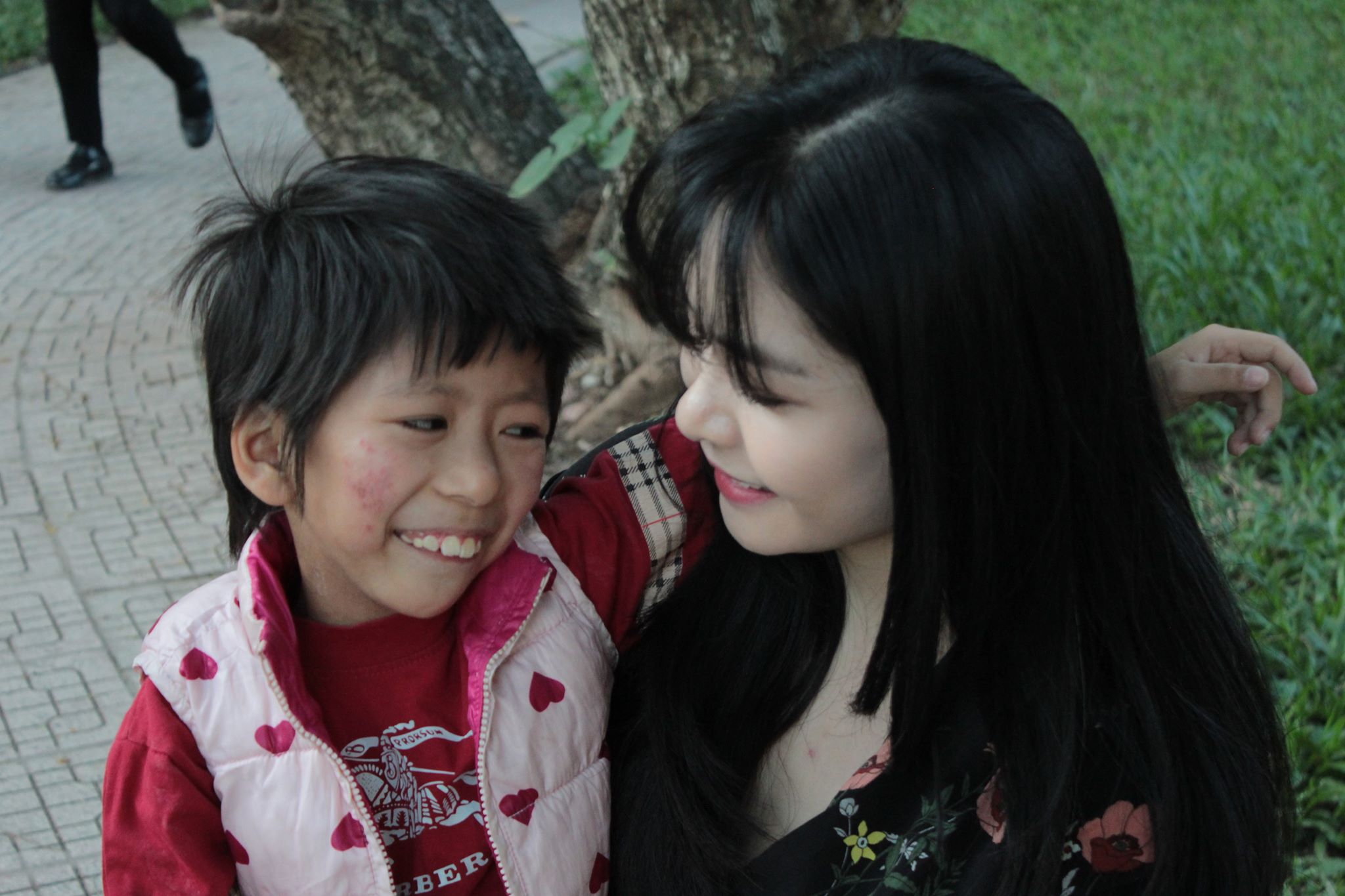 Nhìn cách Linh chăm sóc bé Phương mới thấy được tình cảm và sự yêu thương chân thành mà cô gái 9X Hà thành xinh đẹp này với cô bé gái thiệt thòi. Với Linh đó là thứ tình cảm đặc biệt dành cho số phận kém may mắn như Phương. Đó là tình yêu thương giữa con người với con người.