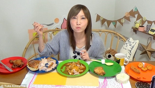 Trong suốt quá trình ăn lượng gà “khủng”, Yuka không hề có biểu hiện ngán ngẩm mà luôn giữ nét tươi vui, hứng thú. Ảnh: Daily Mail.