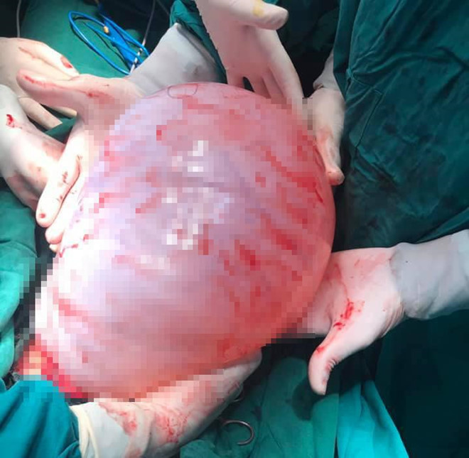 BSCKI Phạm Thanh Thịnh, khoa Ngoại Tổng hợp, trưởng kíp mổ, cho hay khối u rất to, nguồn gốc bắt đầu ở buồng trứng bên phải. Kíp mổ đã tiến hành cắt lấy khối u và khâu đóng ổ bụng. Khối u có kích thước 25x25x35 cm, nặng gần 8 kg. Nếu không được phẫu thuật kịp thời, khối u có thể gây tắc ruột, nguy hiểm đến tính mạng người bệnh.