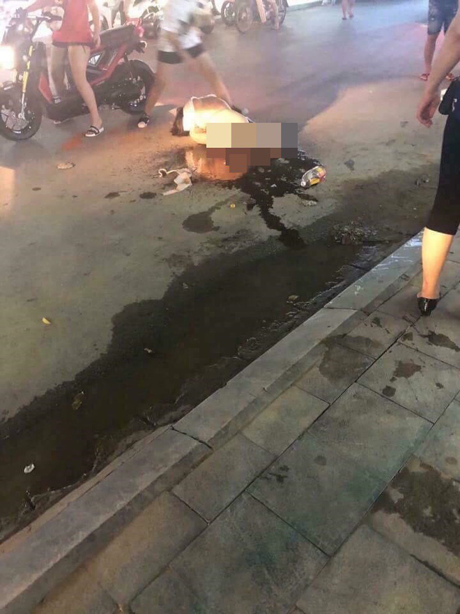 Người phụ nữ này còn cầm theo 1 chai nước màu đục và đang tưới quanh người nạn nhân.