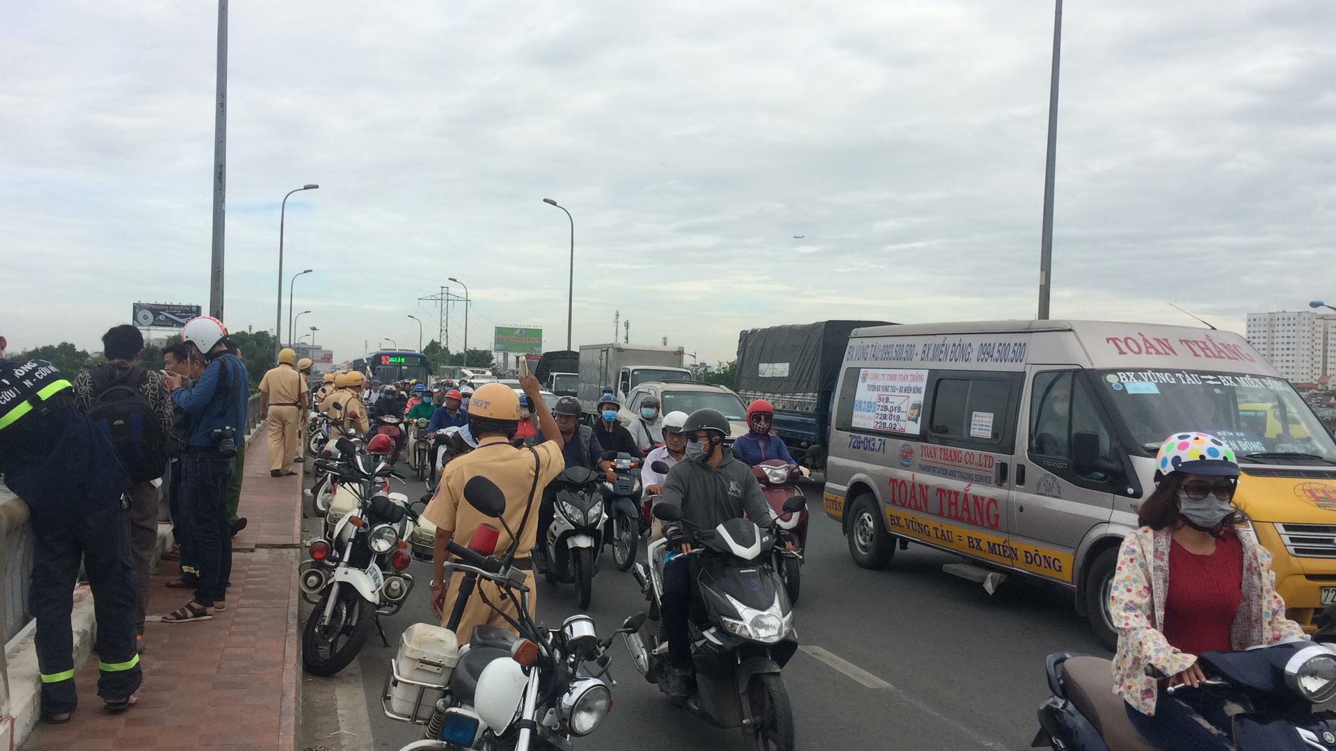 Đến 10h30 ngày 21/12, Công an quận Bình Thanh phối hợp cùng lực lượng cứu hộ cứu nạn thuộc Cảnh sát PCCC TP. HCM vẫn đang tiến hành lặn tìm cô gái (khoảng 20 tuổi) nhảy cầu Bình Triệu xuống sông Sài Gòn tự tử.